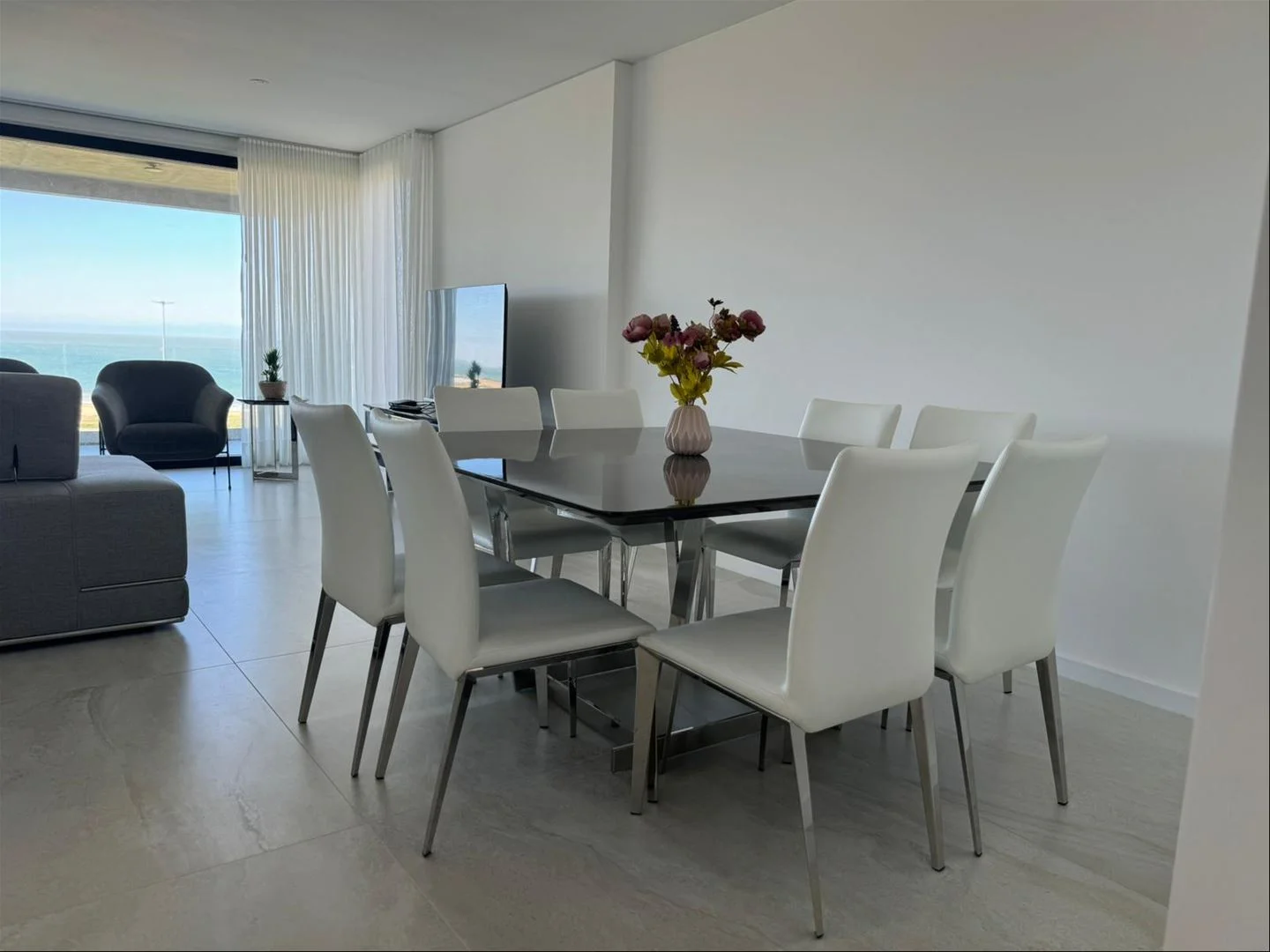 4 suites, living comedor con salida a una amplia terraza con vista al mar.