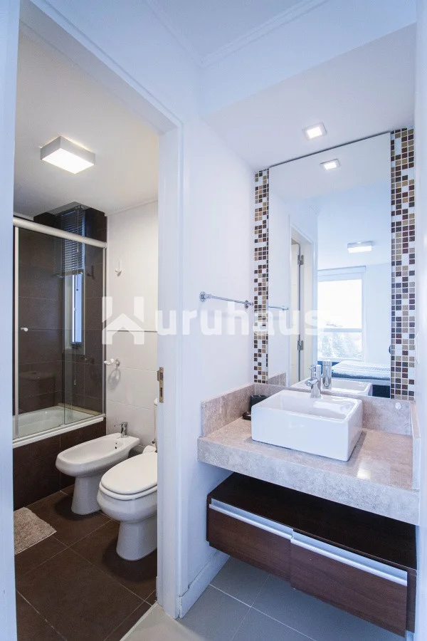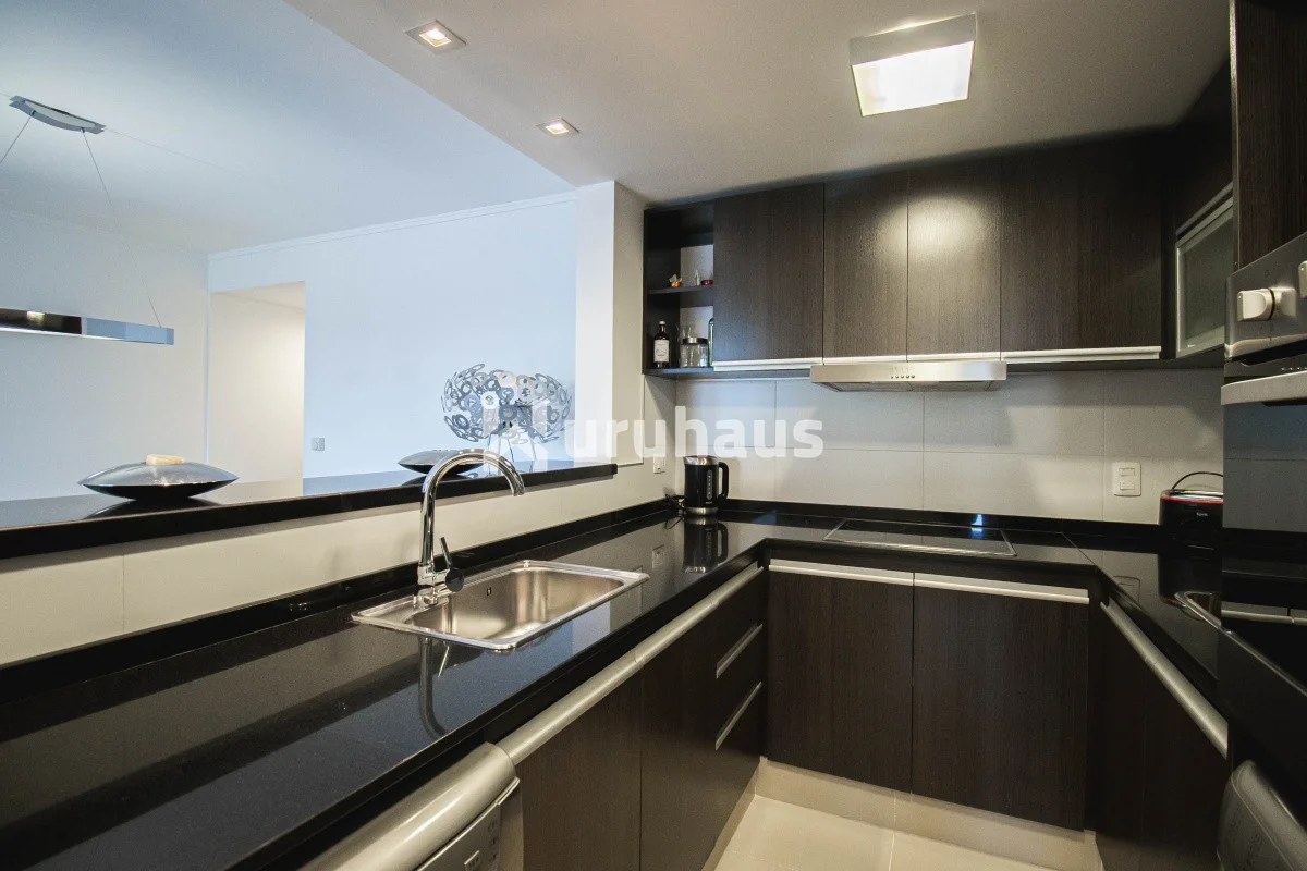 Apartamento de tres dormitorios, uno de ellos en suite; dos baños completos; living comedor amplio con acceso a un balcón muy lindo; cocina estilo americana con excelente barra.