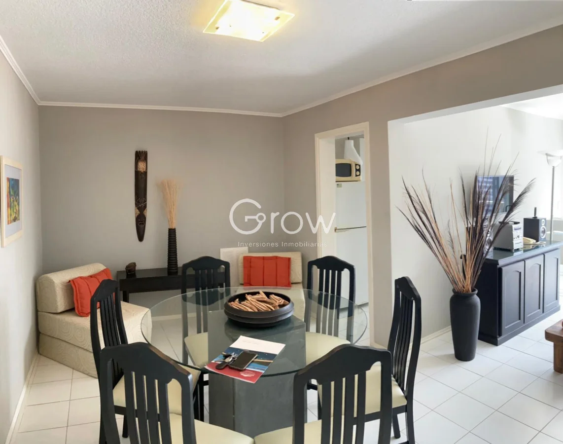 La cocina está totalmente equipada y se integra a la perfección con el living comedor, creando un espacio abierto y luminoso. Equipado con microondas, lavarropas, heladera con freezer, audio y TV, este apartamento tiene todo lo que necesitas para una vida cómoda y moderna.
