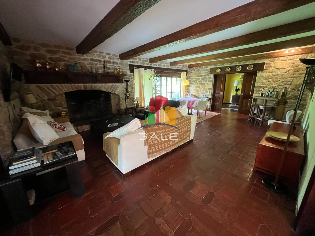 En planta baja se encuentra un amplio living con estufa a leña, comedor, barbacoa completa con cocina, cocina con office, toilette de recepción, 3 dormitorios, uno de ellos en suite y los otros dos comparten un baño, lavadero y dos dependencias de servicio con baño que pueden utilizarse como dormitorios ya que cuentan con excelentes dimensiones y están muy bien puestos.