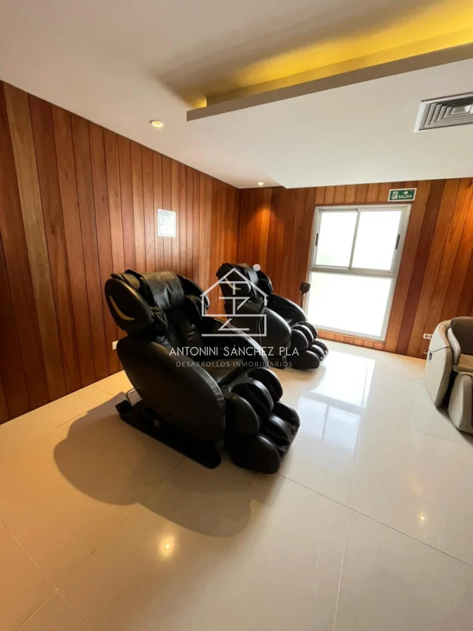 La torre cuenta con amenities premium, entre ellos gimnasio, piscinas exteriores, piscina para niños, piscina cubierta, saunas, área de relax, microcine, sala de juegos, servicio de limpieza y servicio de playa.