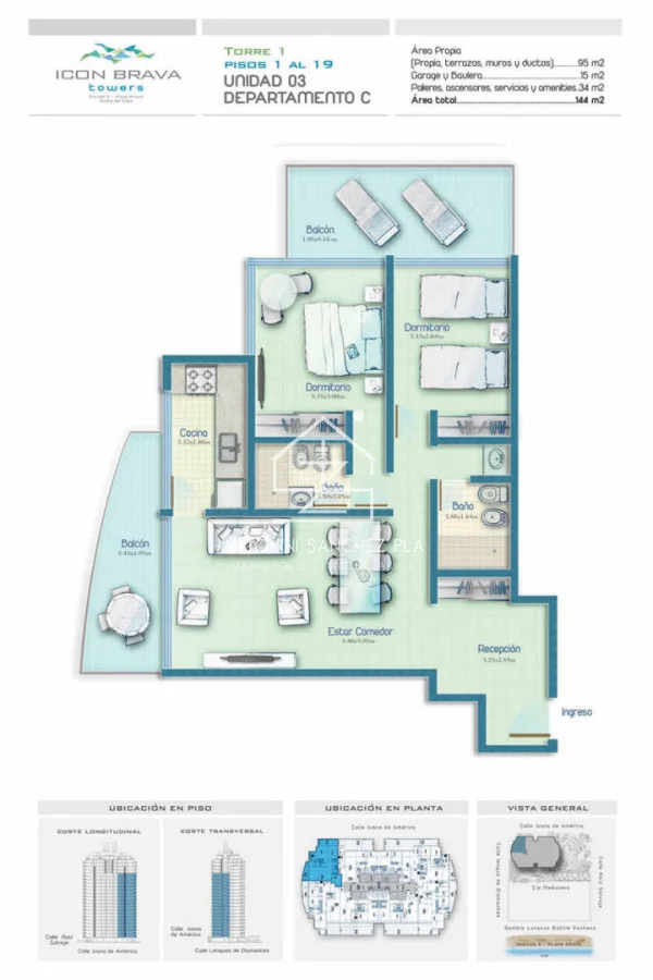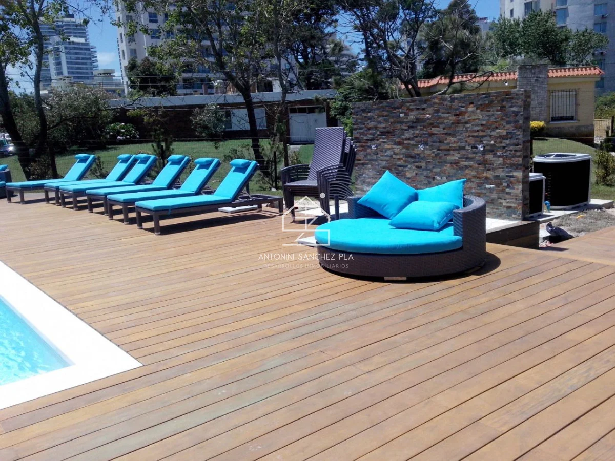 El apartamento ofrece 2 dormitorios, 2 baños, 1 suite principal, living comedor con salida a terraza, cocina definida y totalmente equipada, aire acondicionado en todos los ambientes, además de garaje y baulera. Ambos dormitorios tienen salida a una amplia terraza secundaria, lo que aporta muy buena expansión y luminosidad.