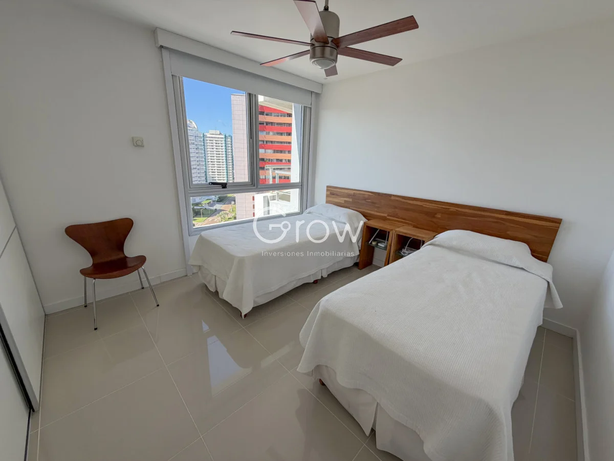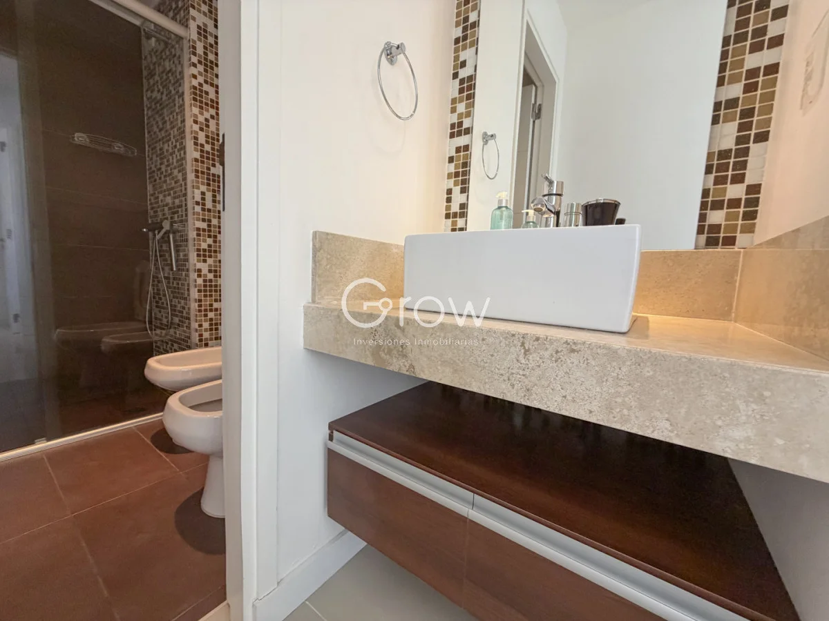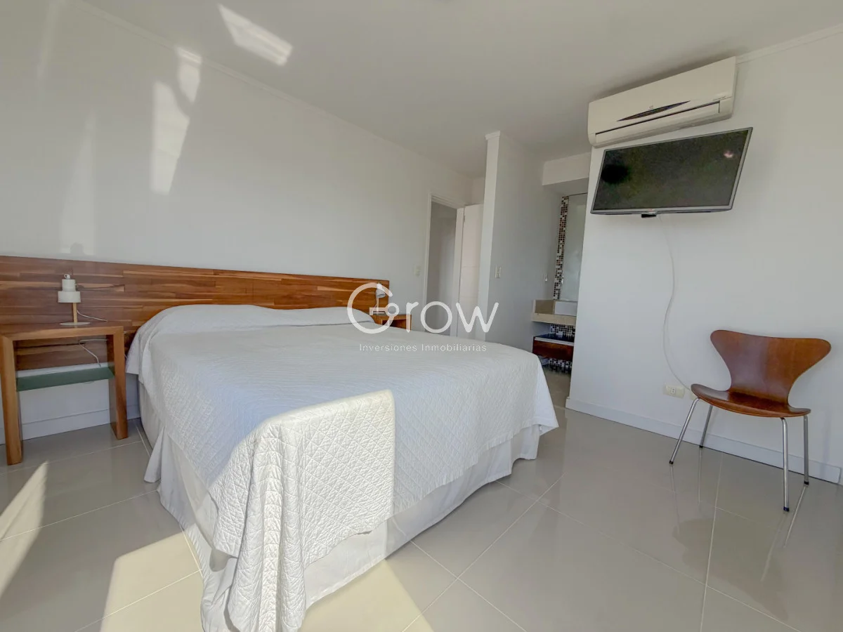 Edificio con servicios completos, donde destacamos: mucama, servicio de playa, mantenimiento, recepción 24 hs, playroom, gimnasio, piscina interior y exterior, barbacoa, sector de fogón exterior.