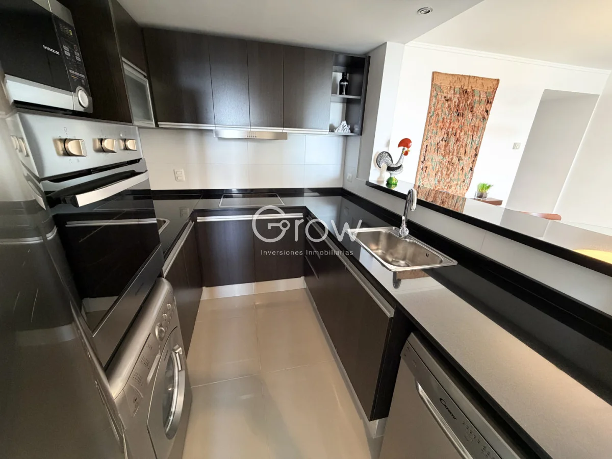 Cómodo departamento de 3 dormitorios, 2 baños, living comedor con cocina integrada, balcón amplio, cochera para un auto.