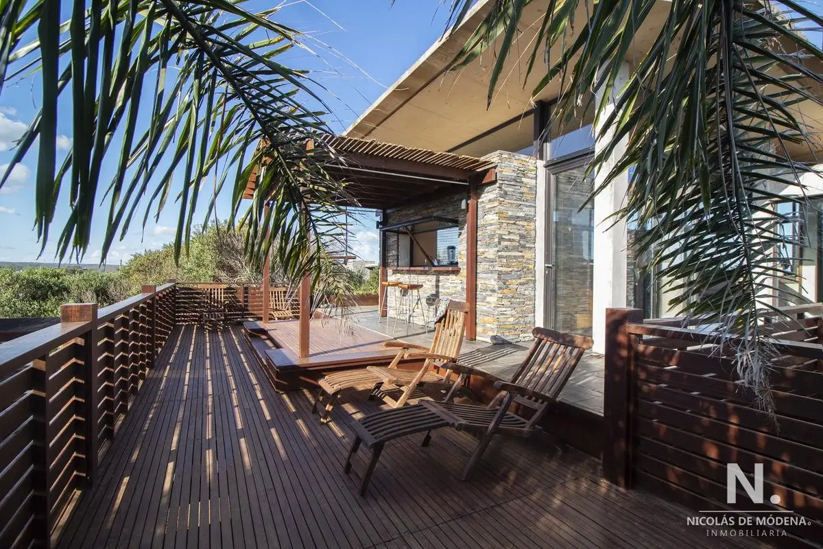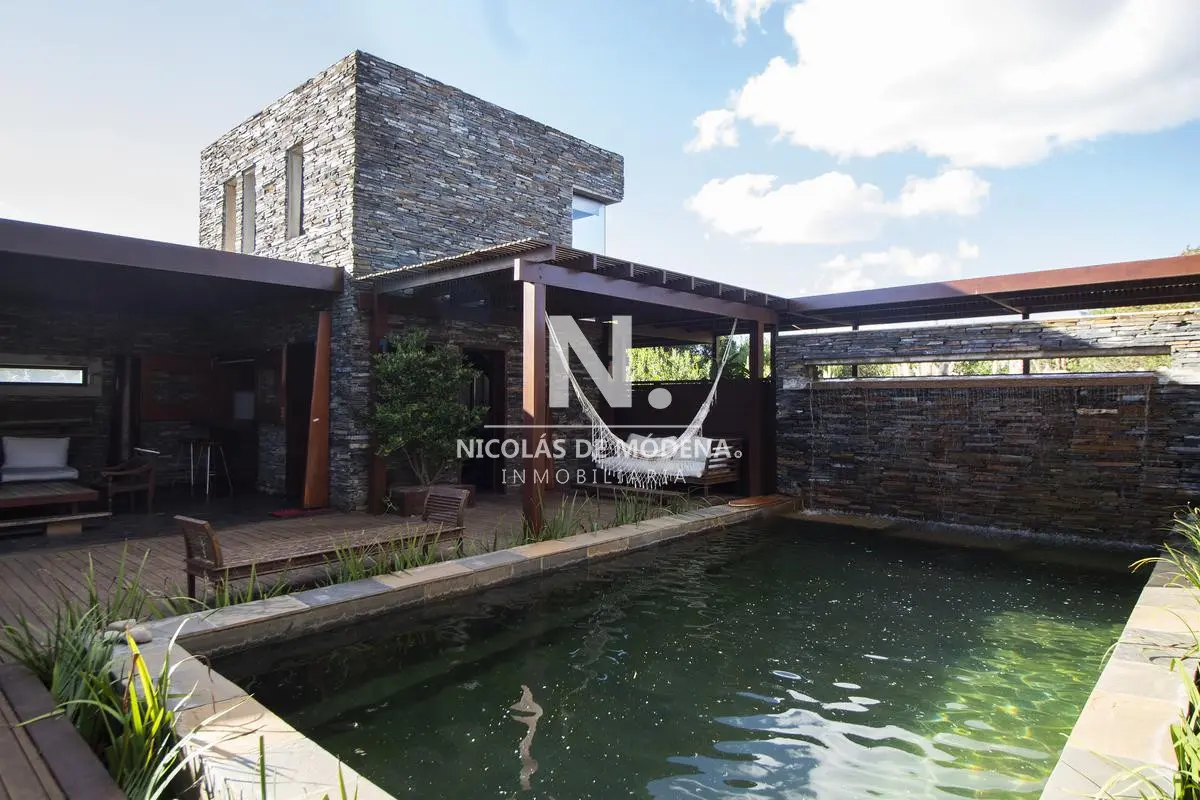 Es una vivienda espectacular en El Chorro - Manantiales que cuenta con un terreno de 600m2 de los cuales están edificados 302m2, lo que le deja un amplio espacio al aire libre donde se ubica la piscina de borde infinito y pared de piedra con cascada y una hermosa vista que le regala increibles puestas de sol.