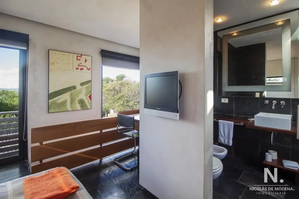 En su interior cuenta con 4 Dormitorios en suite, siendo uno de ellos master con doble baño, un espacio de gran tamaño y muy iluminado con ventanas que te permiten apreciar de manera hermosa la vegetación que rodea a la casa, 5 Baños con una capacidad para 8 personas aproximadamente.