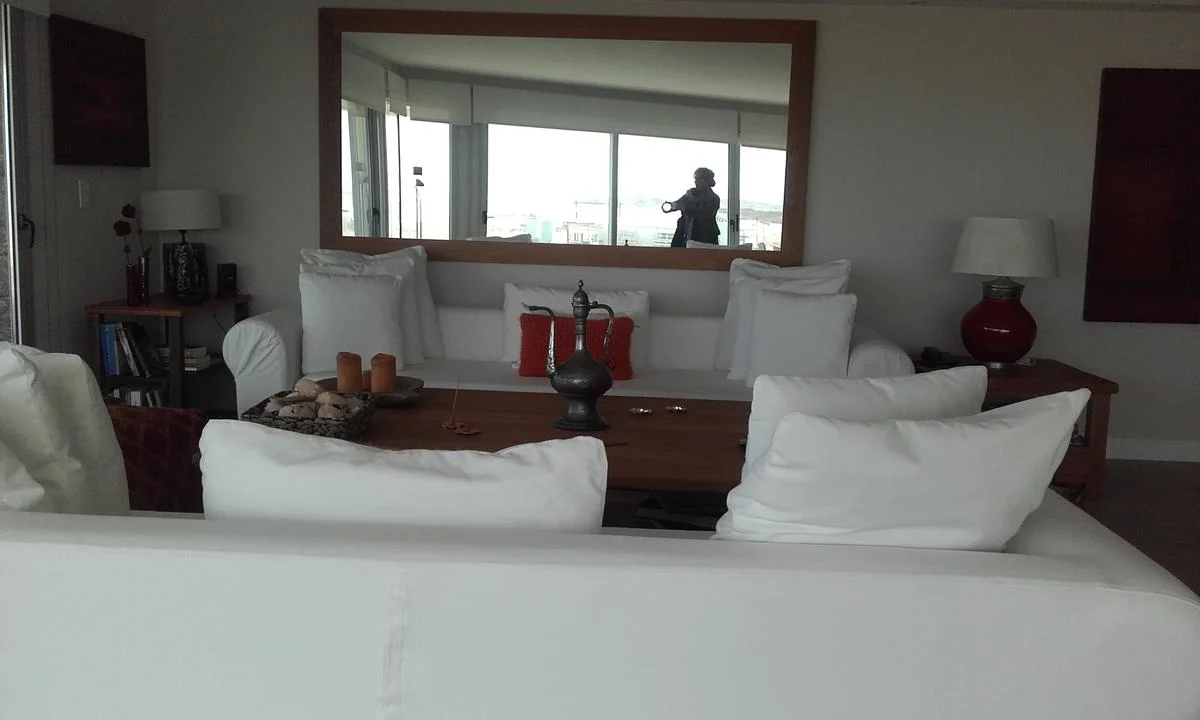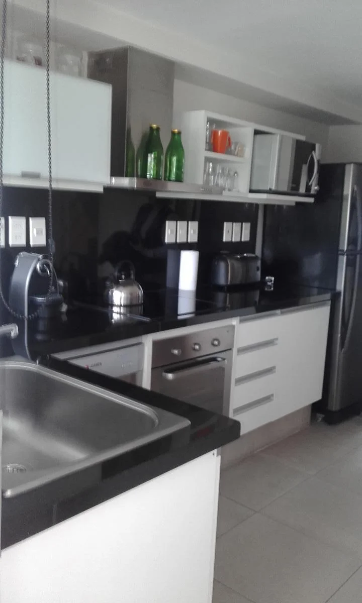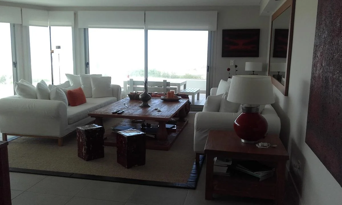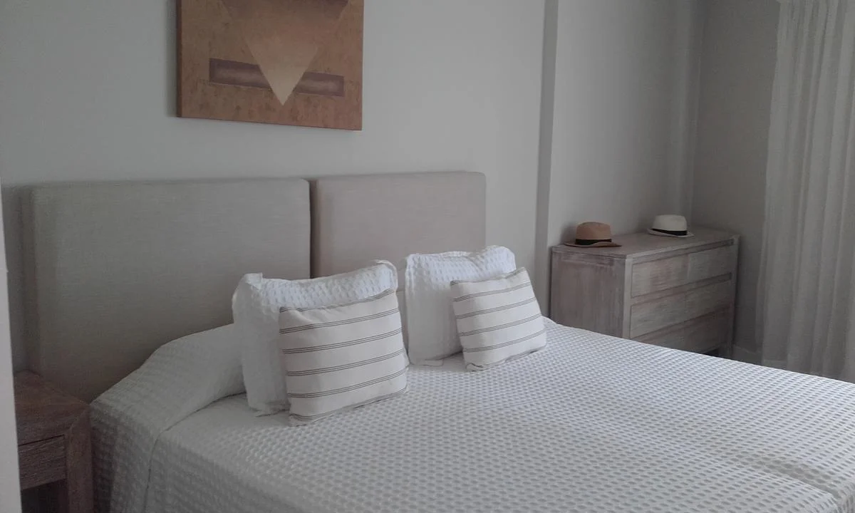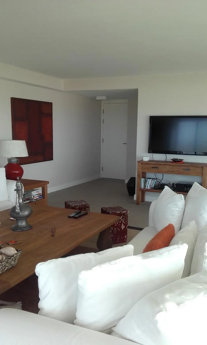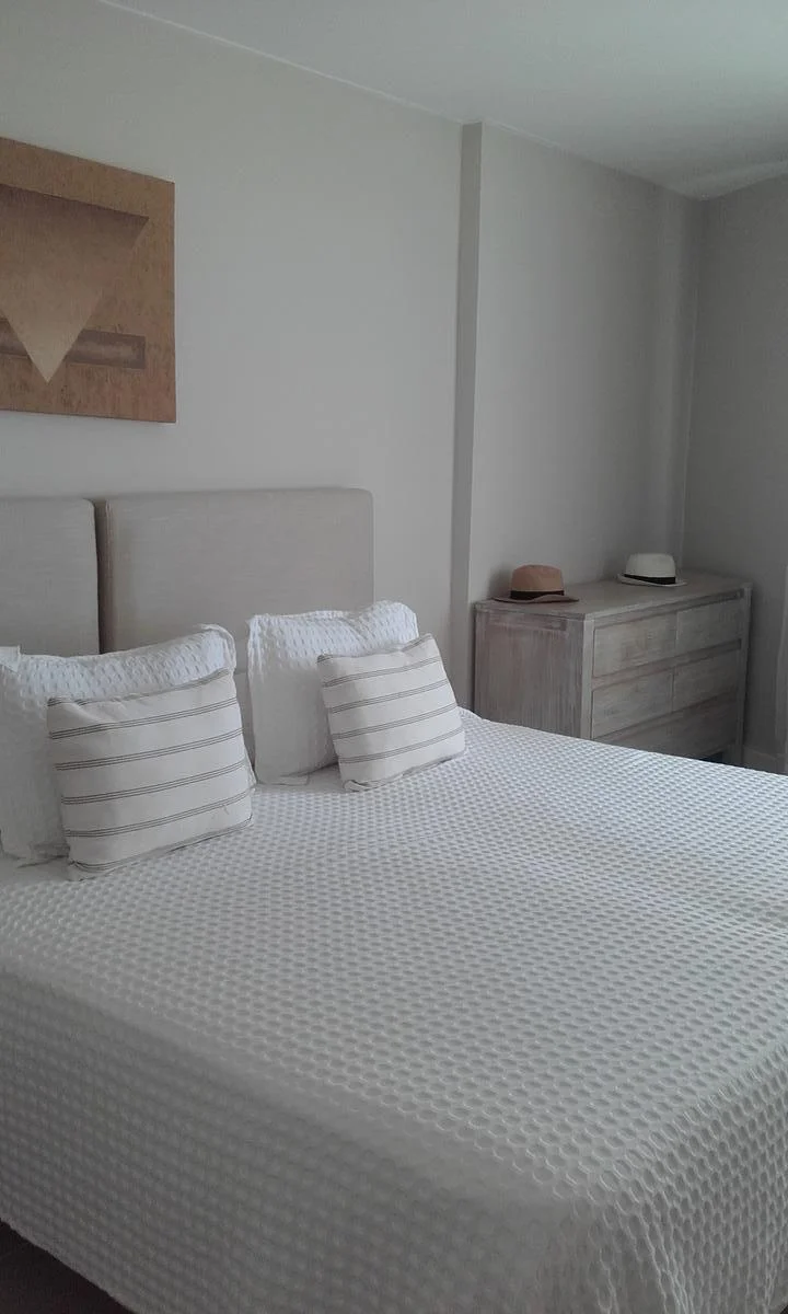 Very nice apartment in the Esturion Montoya building overlooking the beach, 3 bedrooms en suite and dependence. The living room with sliding doors allow you to enjoy the spectacular ocean view, as well as the master suite, comfortable and well equipped kitchen. Very good terrace and own barbecue. The complex has a heated pool, gym, 24 hour security, maid and beach service.