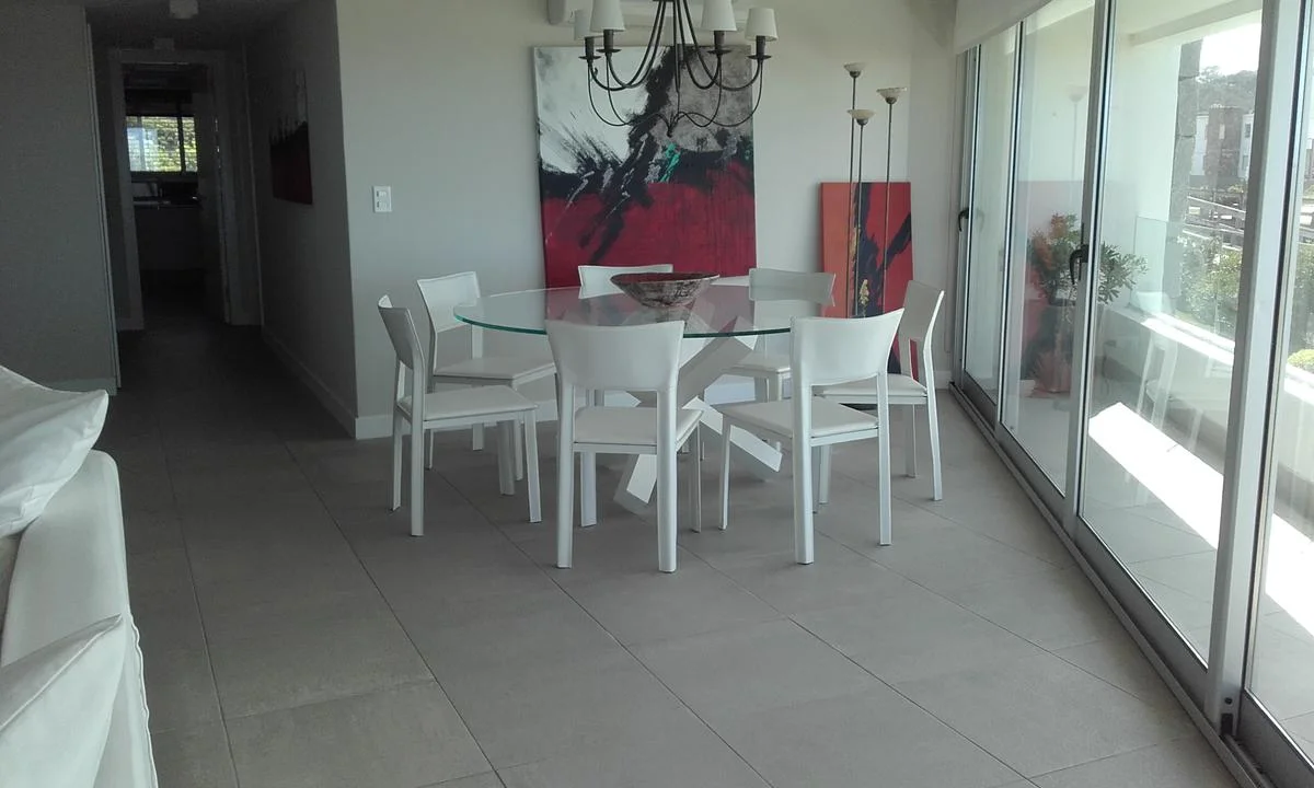 Muy buen departamento en el edificio Esturion Montoya que da a la playa, 3 dormitorios en suite y dependencia. El living comedor con puertas corredizas permiten disfrutar de la espectacular vista al mar,lo mismo que la suite principal.Comoda cocina bien equipada. Muy buena terraza y parrillero propio. El complejo tiene pileta climatizada, gimnasio ,seguridad 24 hrs.y servicio de mucama y de playa.