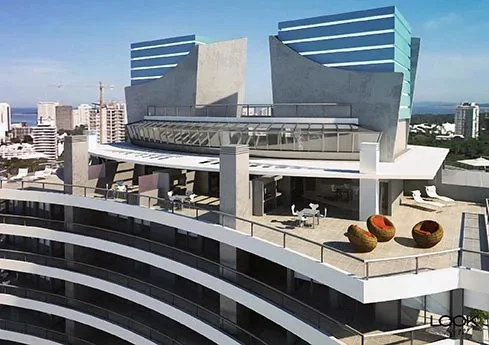 El edificio brinda una experiencia completa de amenities de primer nivel, incluyendo piscinas interior y exterior, spa, gimnasio, canchas deportivas, microcine, kids club y servicio de playa, entre otros, en un entorno moderno y cuidado .