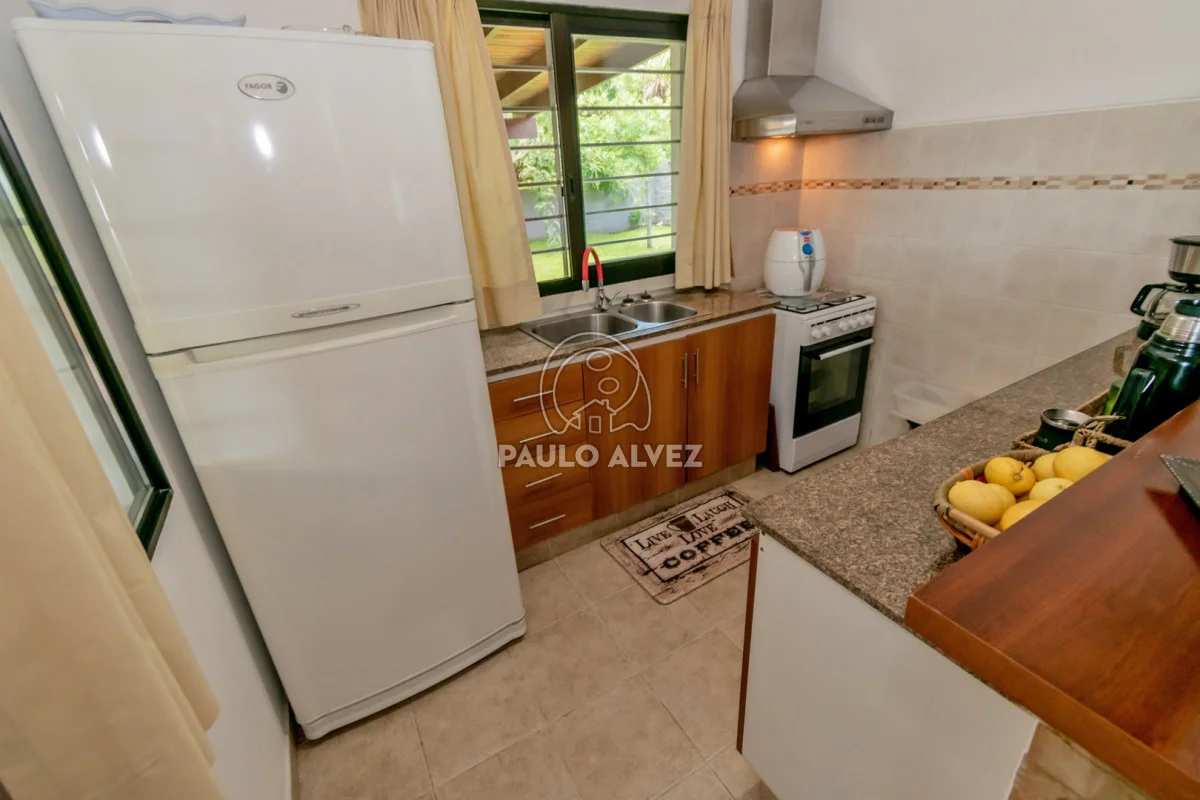 Ubicada a 150 metros del mar, rodeada de un entorno agradable y tranquilo, perfecta para disfrutar y descansar en sus vacaciones. Emplazada sobre terreno de 360m², 75 metros edificados en una planta y 15 metros de frente orientados hacia el Este. Hermoso jardín arbolado al frente y cochera con acceso lateral. La propiedad se encuentra totalmente cercada. Ambientes cómodos y luminosos distribuidos en living comedor con estufa a leña, cocina definida por barra desayunador y baño social completo. Pasillo distribuidor hacia segundo baño social, dos dormitorios ambos con aire acondicionado y placares empotrados. Acceso por puerta ventana a patio con parrillero cubierto, parque arbolado sumamente disfrutable en familia o con amigos. Consulte por más información.