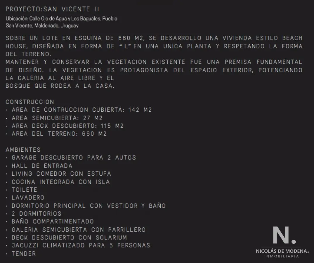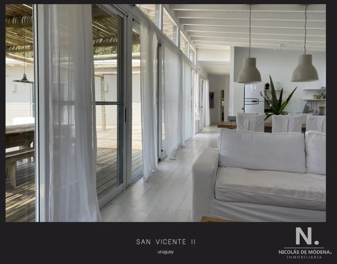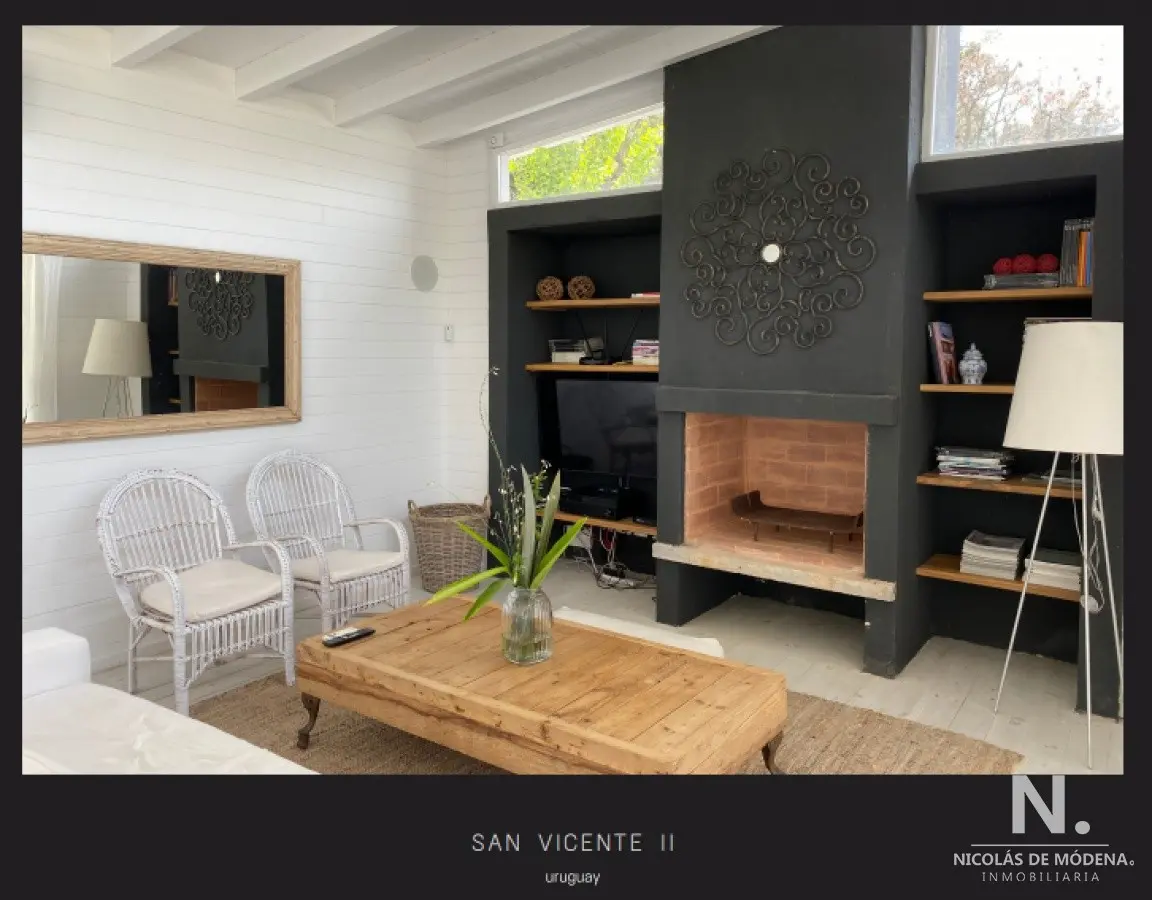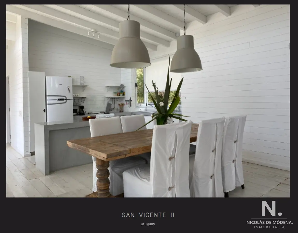 Casa en San Vicente - Jose Ignacio Ubicado a 400 metros del Mar. Cuenta con 3 Dormitorios, 1 de ellos en suite, 2 Baños. Cocina : , Living , Comedor , Living Comedor Equipamiento : Lavadero - Hidromasaje - Cocina Electrica - Heladera Con Freezer - DirecTV - Placard en dormitorios - Horno - Placard en cocina. Terreno : 660 m2 Consulte con nuestros asesores. Estamos para ayudarle! Referencia Interna : Tera-5105