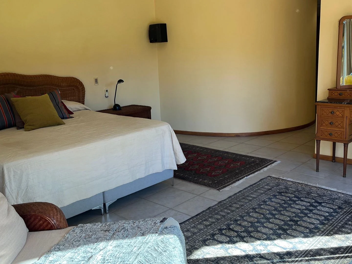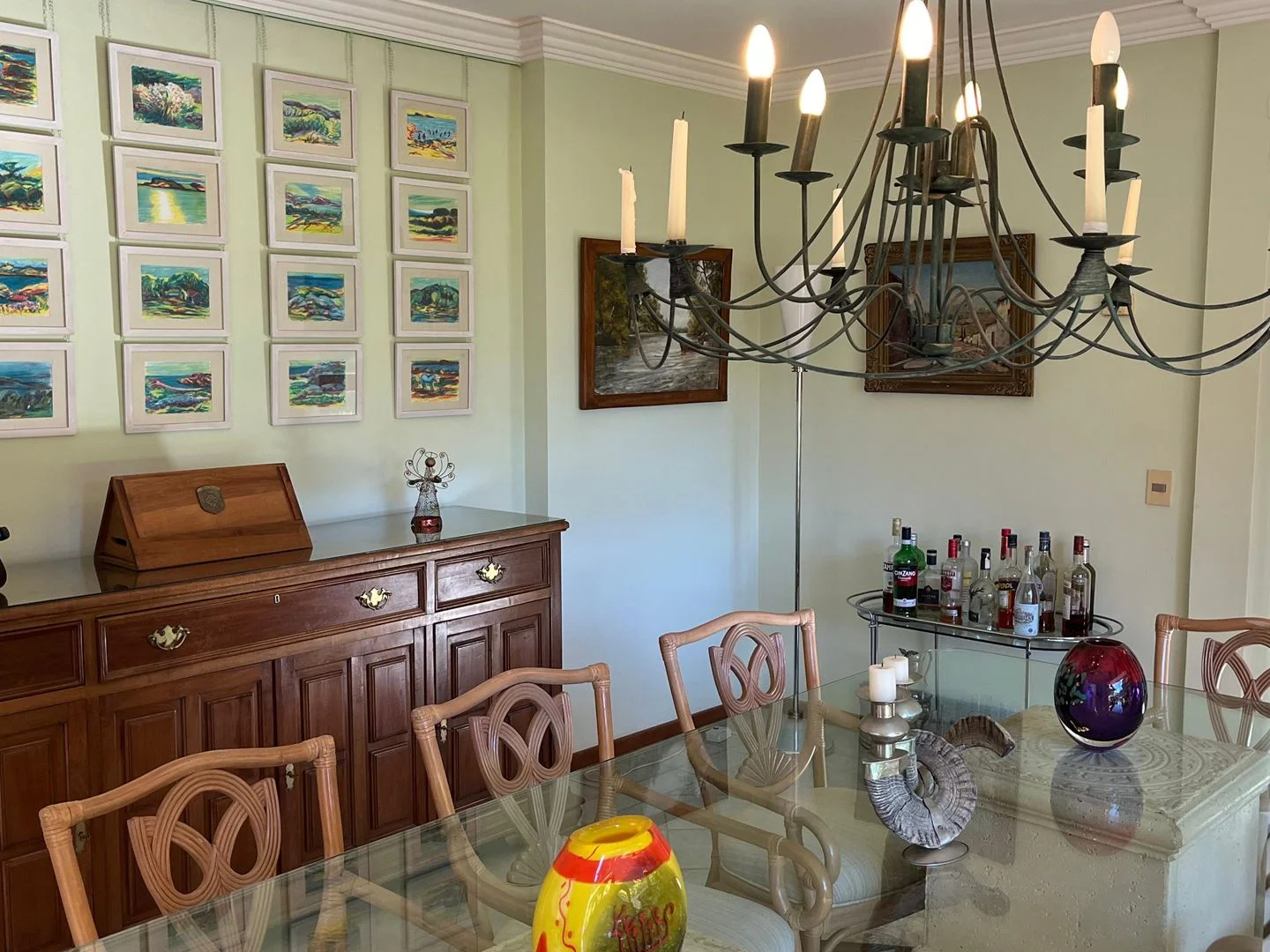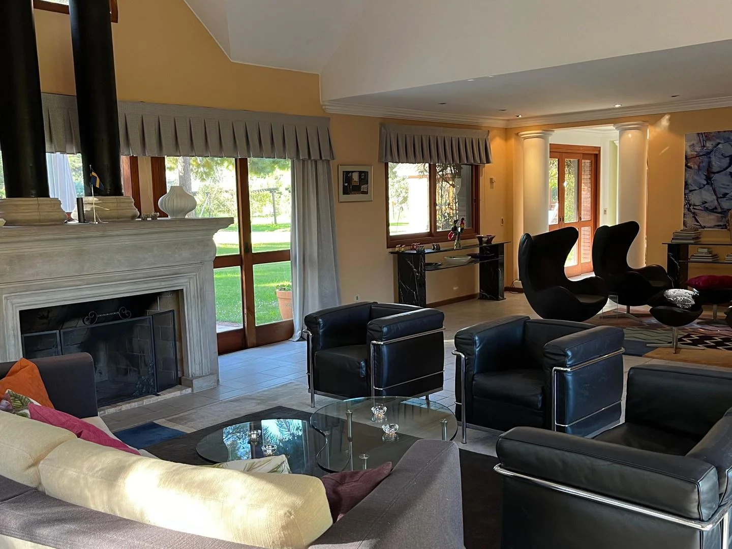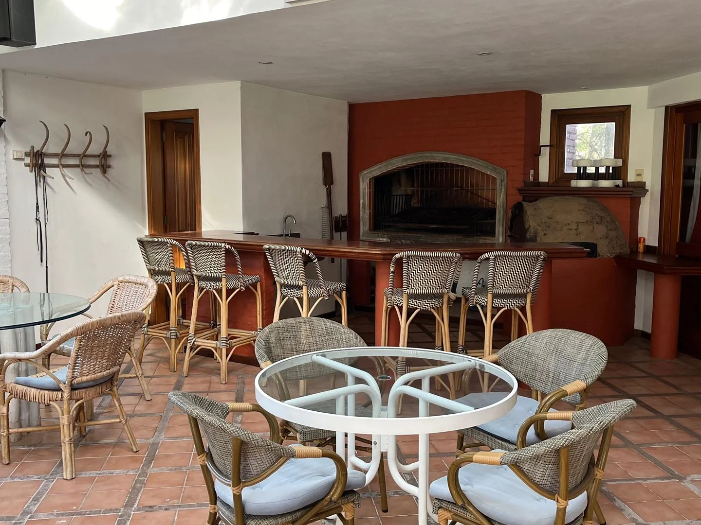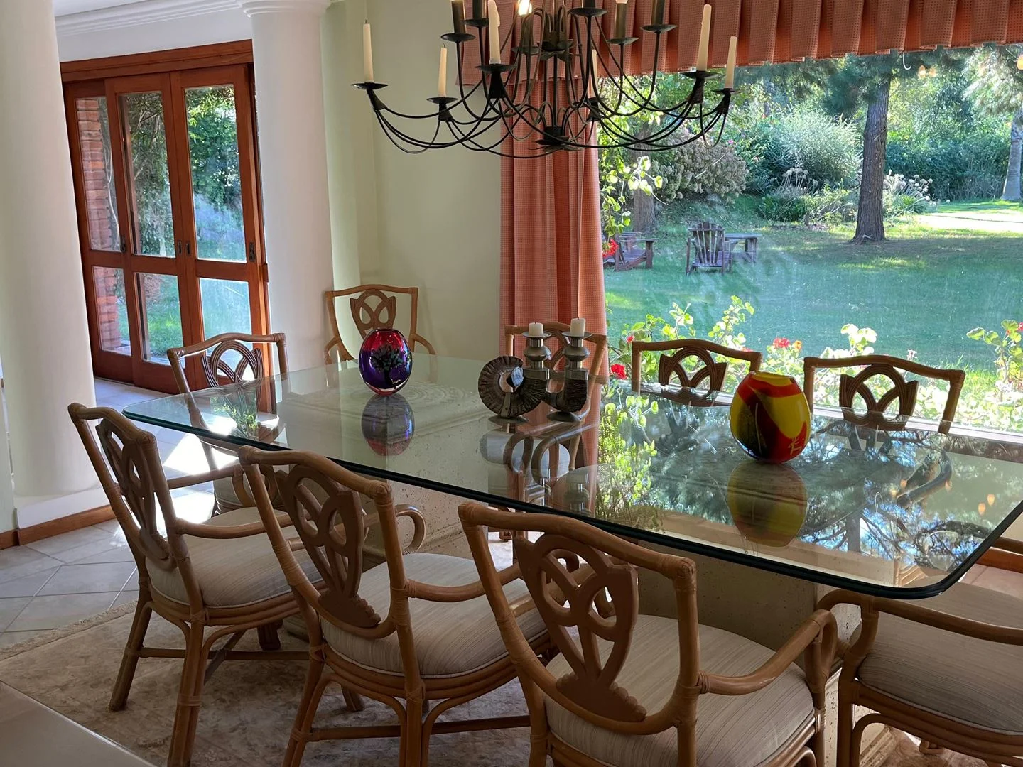 En la planta alta dispone de otros tres dormitorios, siendo el principal en suite y uno de ellos actualmente utilizado como escritorio. En la zona del parrillero cuenta con una gran piscina completamente cubierta con salida a un inmenso jardín. Además, posee una dependencia de servicio completa y un garaje cerrado.