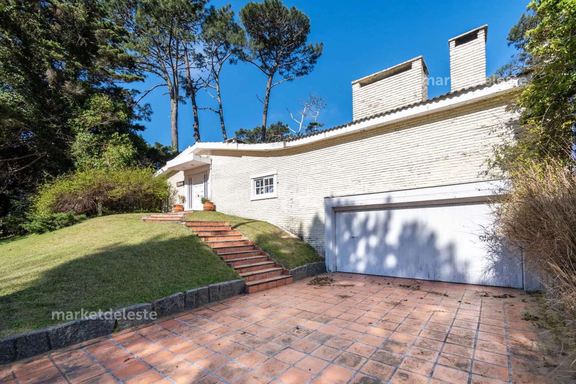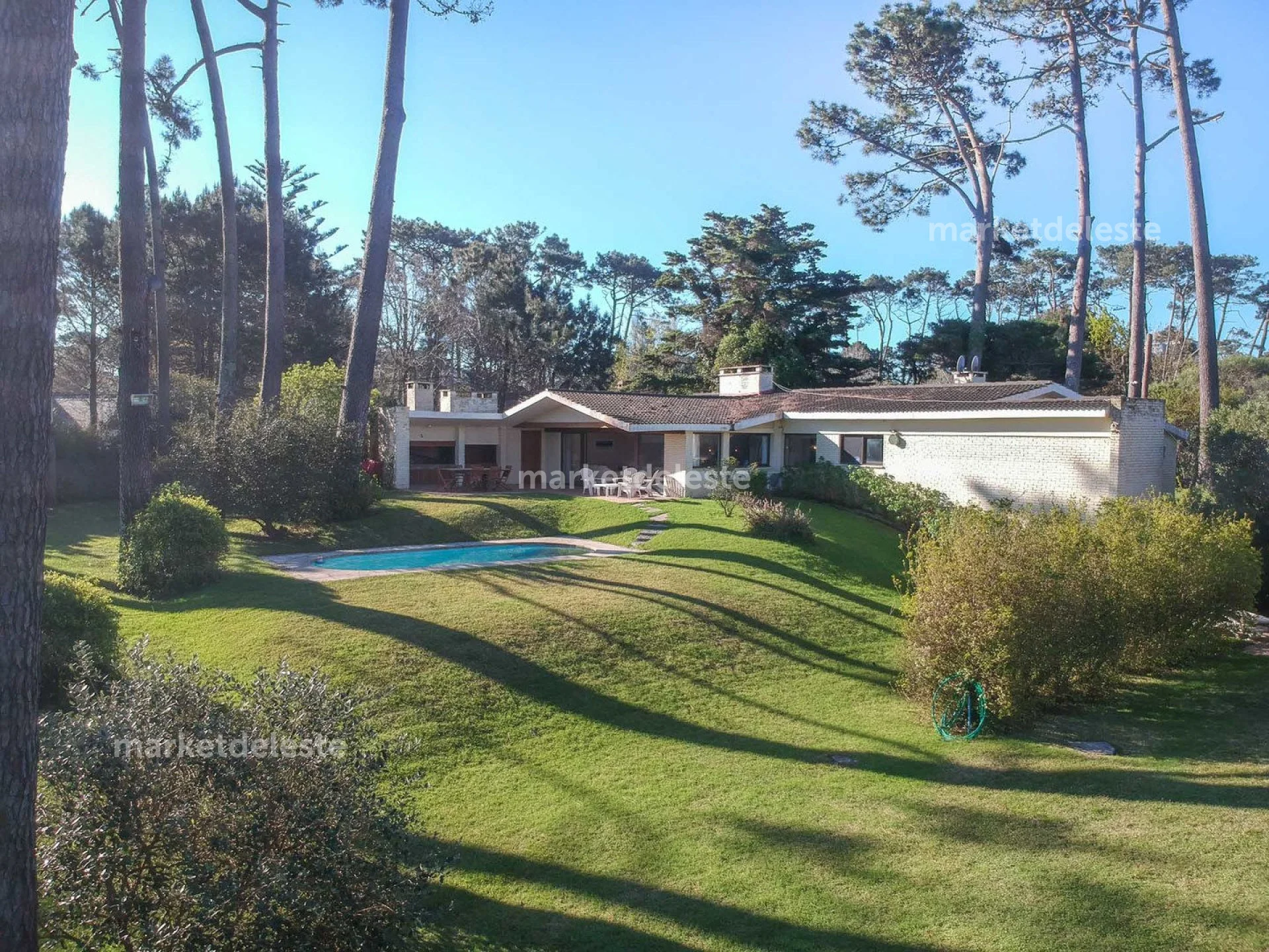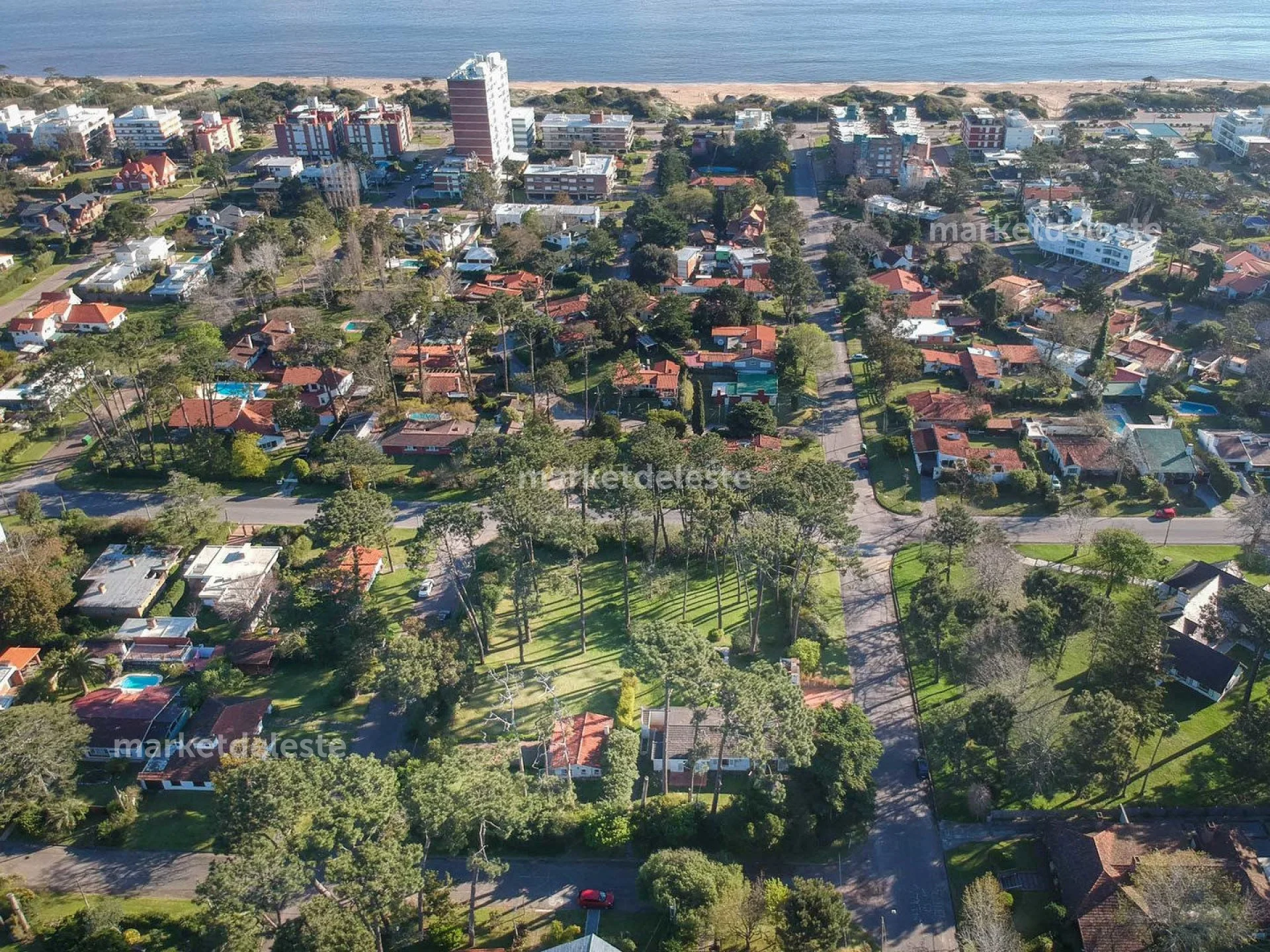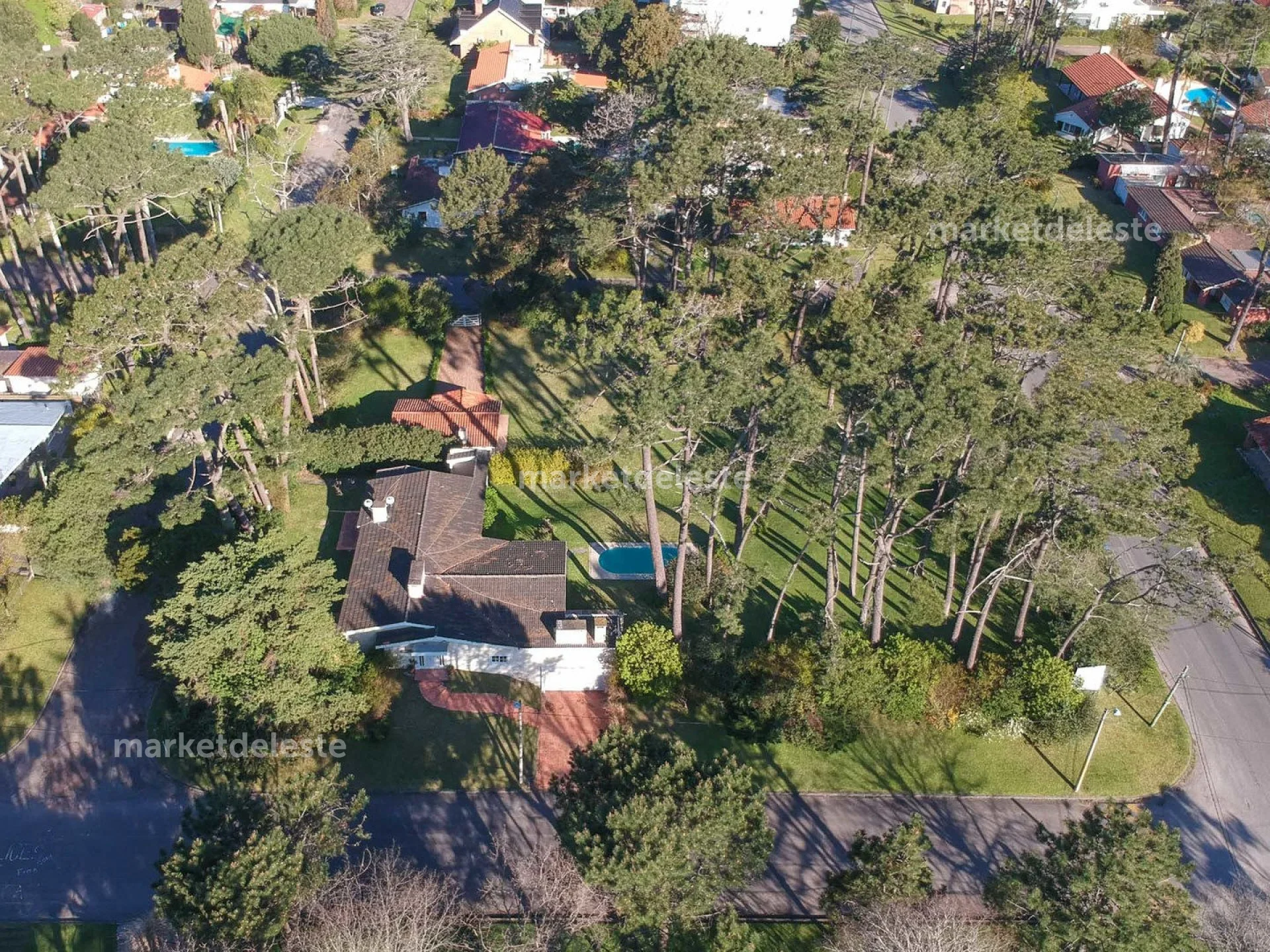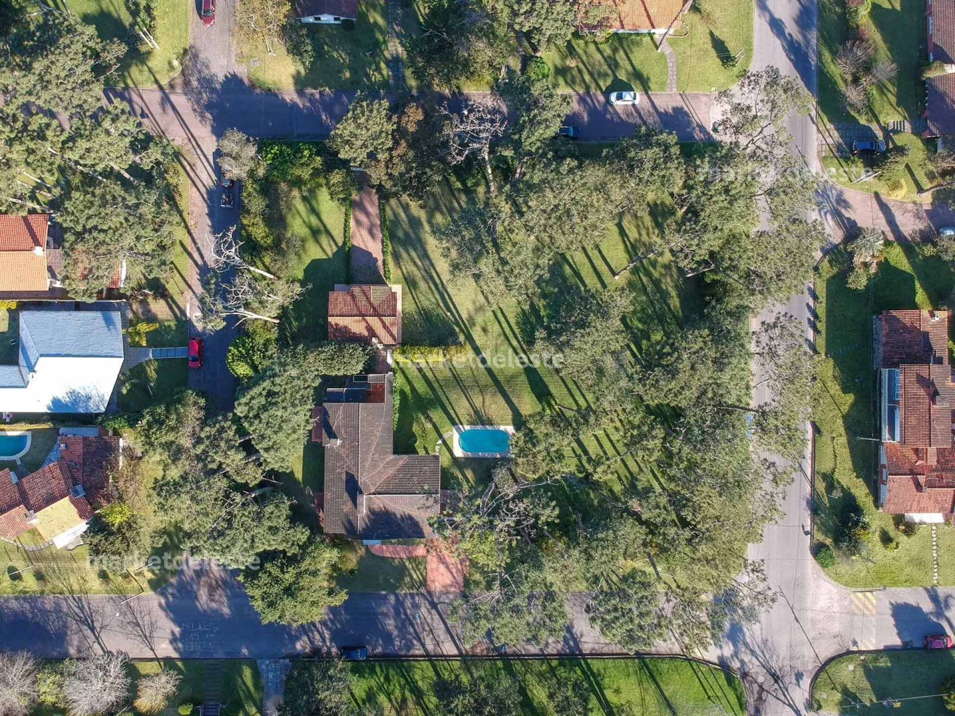 Chalet a tres cuadras del mar, con salida a dos calles por ser una manzana entera. Totalmente perimetrado. Casa principal con amplio living comedor, toilette, cocina definida con comedor diario y salida a lavadero. Tres dormitorios en suite mas habitación de servicio con baño. Amplio jardín de 3400 m2 con piscina y parrillero. Casa de Huéspedes con living comedor y cocina integrada, dos dormitorios y dos baños. Principal en suite. Garaje en subsuelo para dos autos. La tierra cuenta con un proyecto aprobado para Apart Hotel de 60 habitaciones en cuatro plantas.
