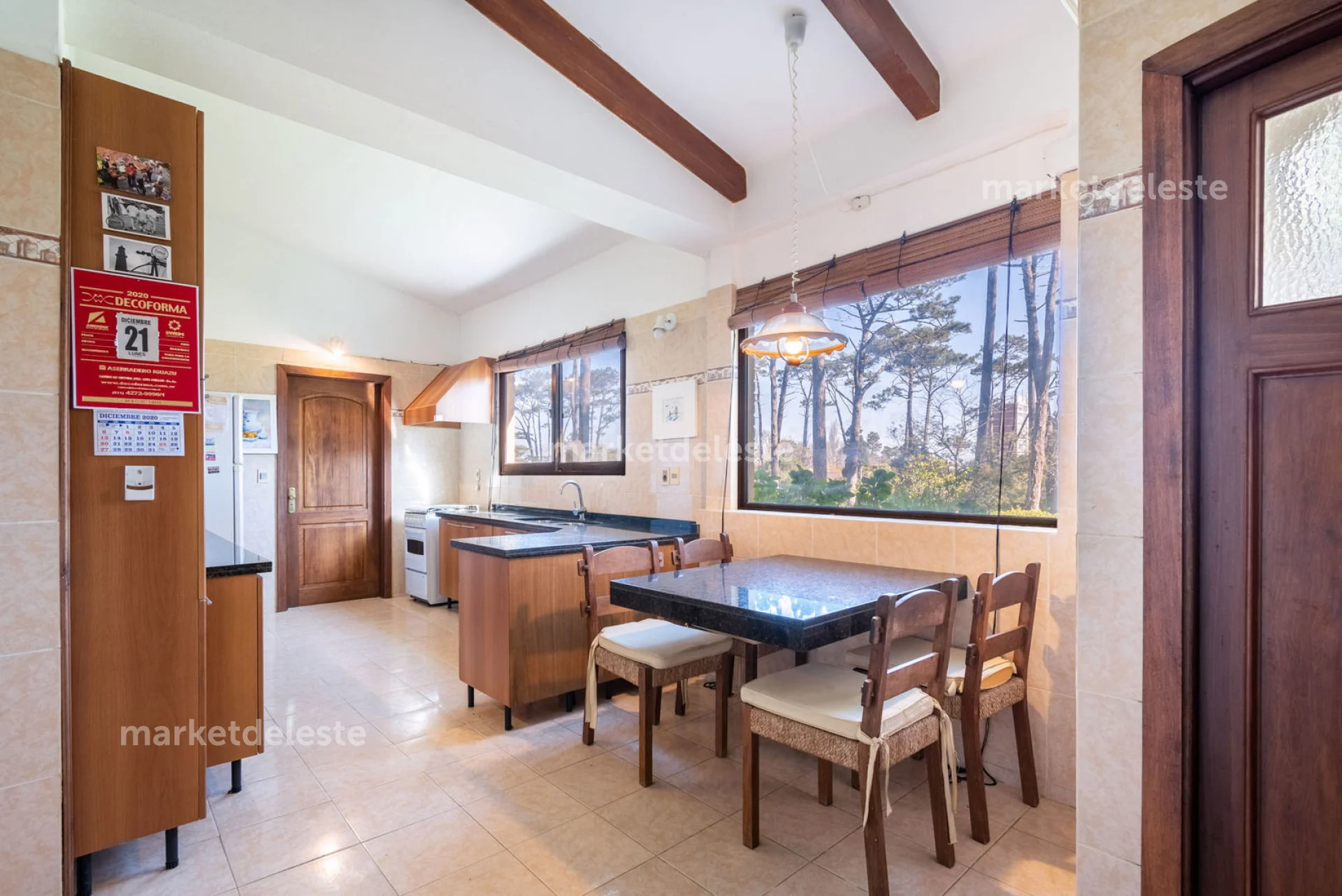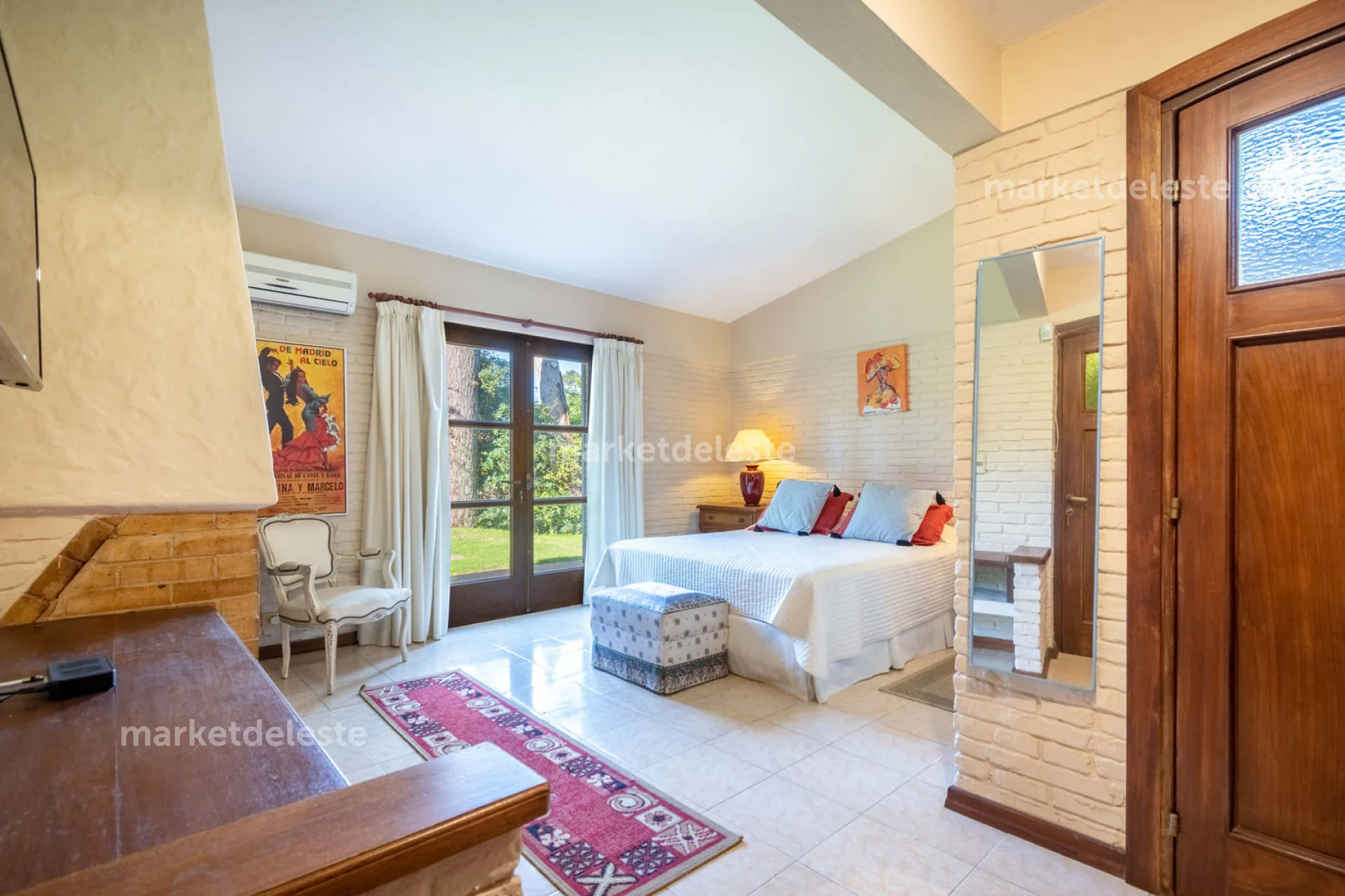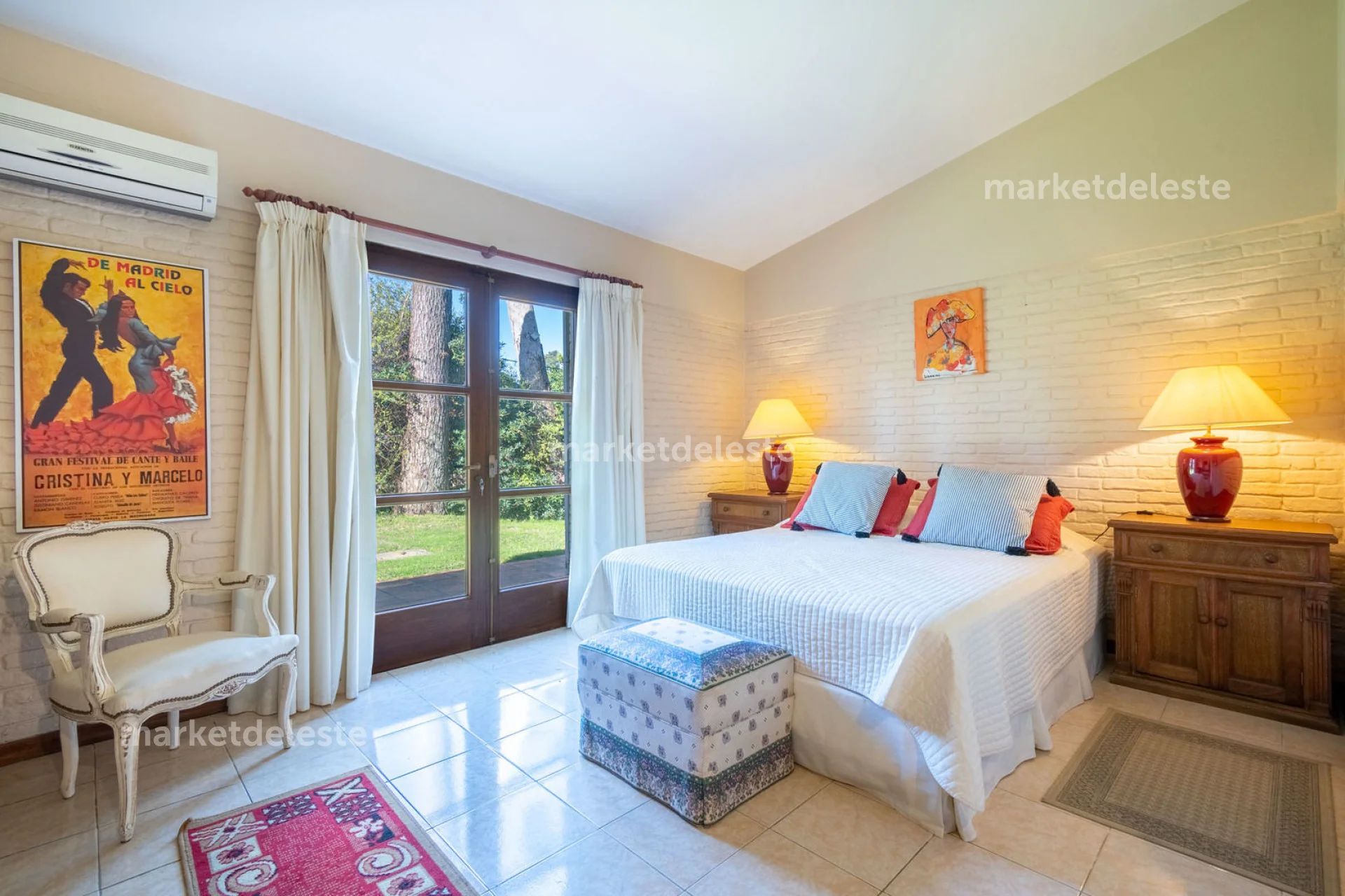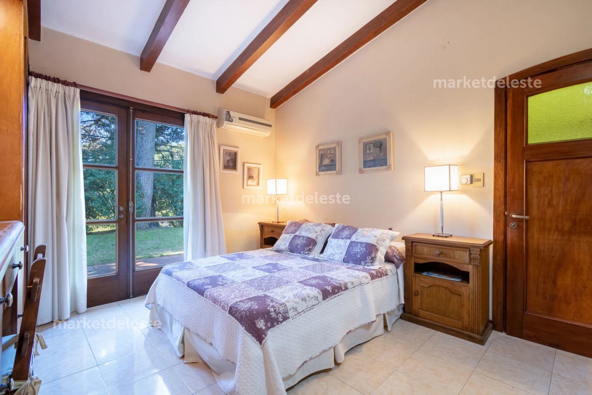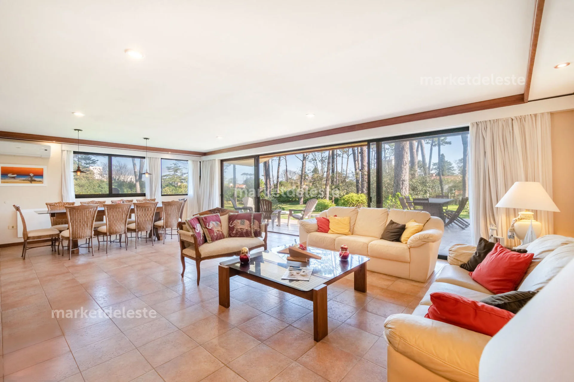 Chalet a tres cuadras del mar, con salida a dos calles por ser una manzana entera. Totalmente perimetrado. Casa principal con amplio living comedor, toilette, cocina definida con comedor diario y salida a lavadero. Tres dormitorios en suite mas habitación de servicio con baño. Amplio jardín de 3400 m2 con piscina y parrillero. Casa de Huéspedes con living comedor y cocina integrada, dos dormitorios y dos baños. Principal en suite. Garaje en subsuelo para dos autos. La tierra cuenta con un proyecto aprobado para Apart Hotel de 60 habitaciones en cuatro plantas.