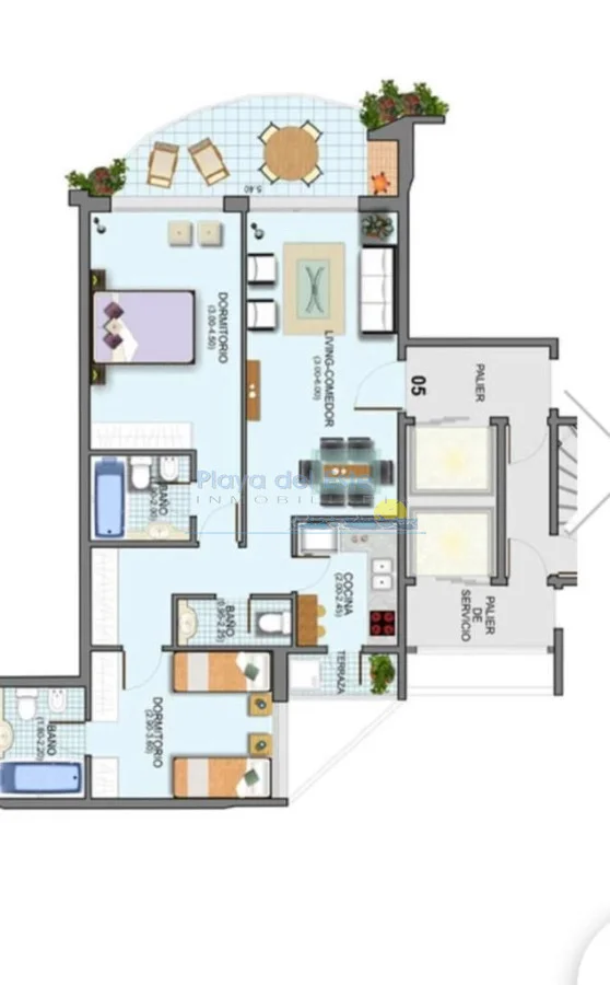 Cuenta con dos dormitorios con sus baños en suite mas toilette. Luminoso living comedor y terraza semi envolvente con parrillero de uso exclusivo. Cocina y lavadero.