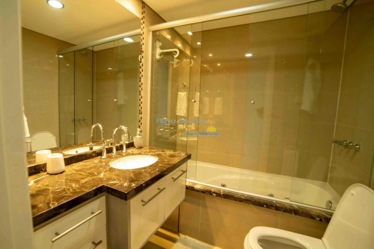Apartamento piso alto en moderna torre ubicada a pasos de la Playa Mansa en Punta del Este.