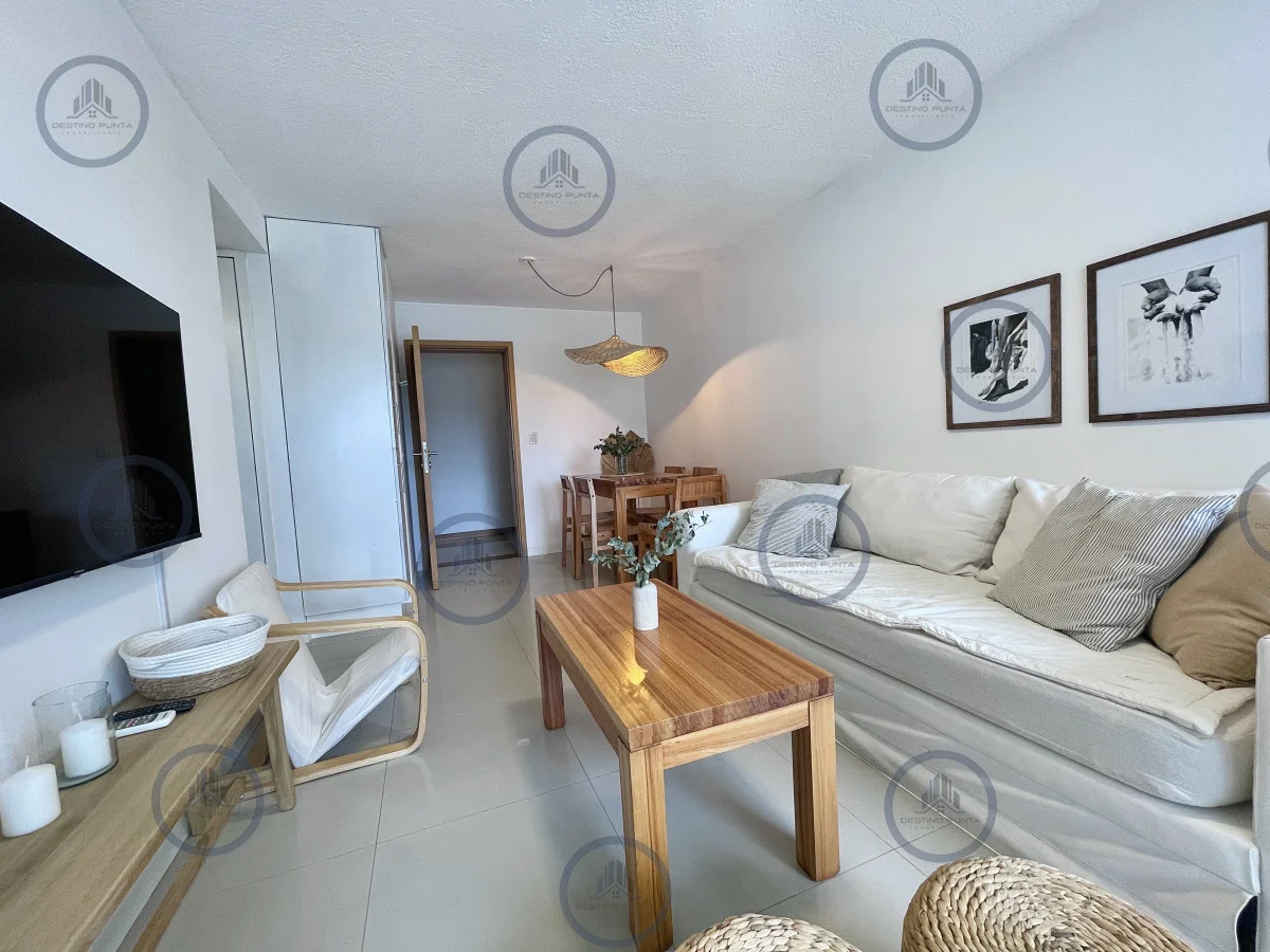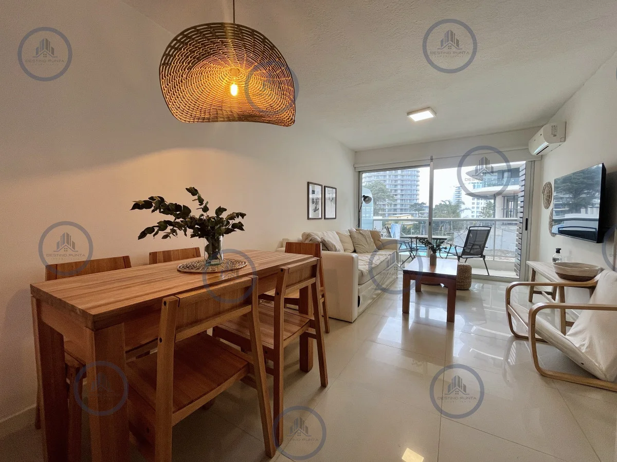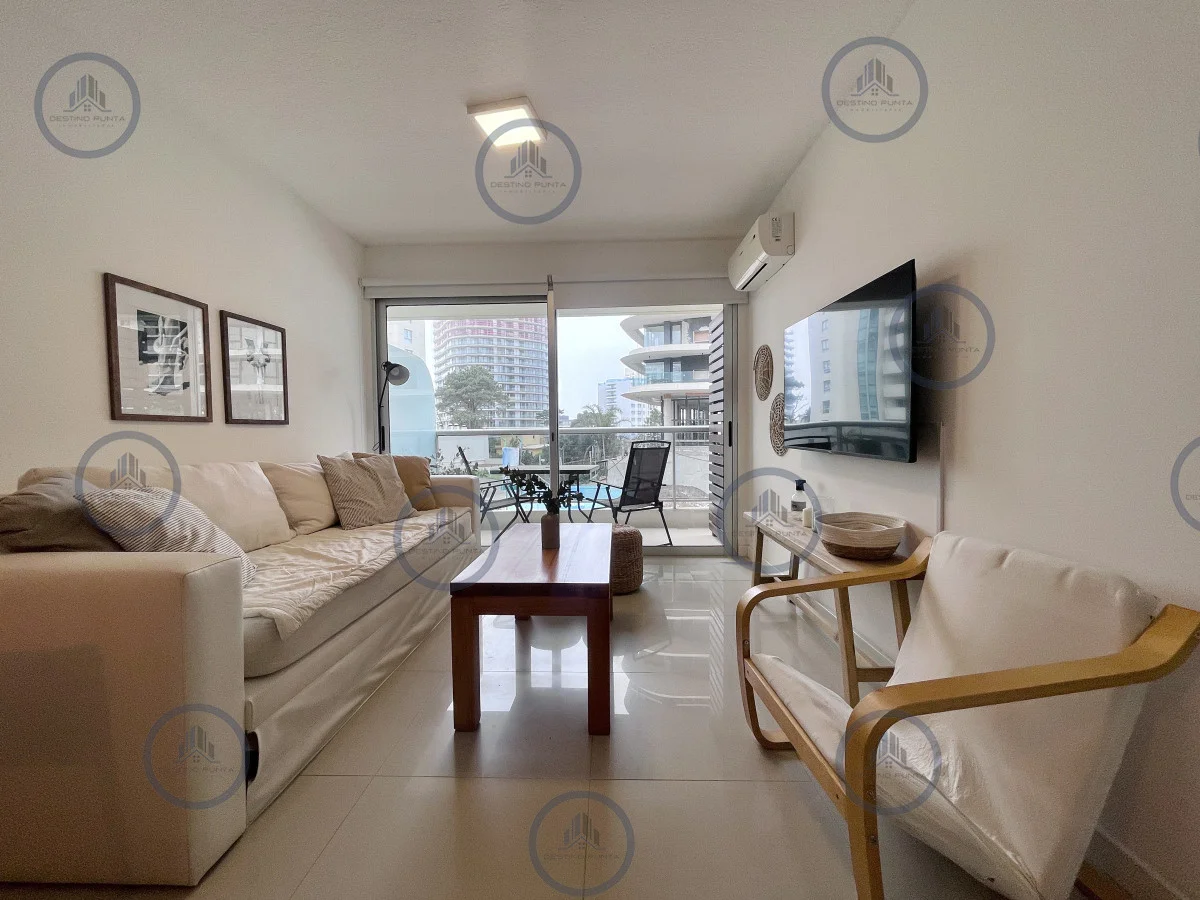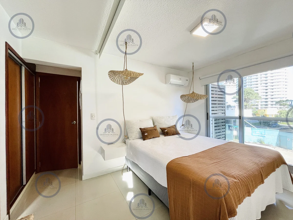 Acogedor apartamento, ubicado a solo 70 metros del mar en la emblemática zona de Playa Brava, Punta del Este. Cómoda unidad de un dormitorio y baño completo en suite. El apartamento ofrece un ambiente cálido y funcional, luminoso living comedor con salida a una terraza cómoda. Cocina definida con terraza lavadero. Cochera techada fija. Dispone de aires acondicionados en todos los ambientes. Además, podrás relajarte y disfrutar del sol en la piscina exterior, los jacuzzys y el parrillero, un complemento perfecto para tus días de verano. Disponible en alquiler anual. Alquiler únicamente con aseguradora. No acepta mascotas. Wifi del edificio incluido. Gastos comunes incluidos. Referencia Interna : Tera-2720