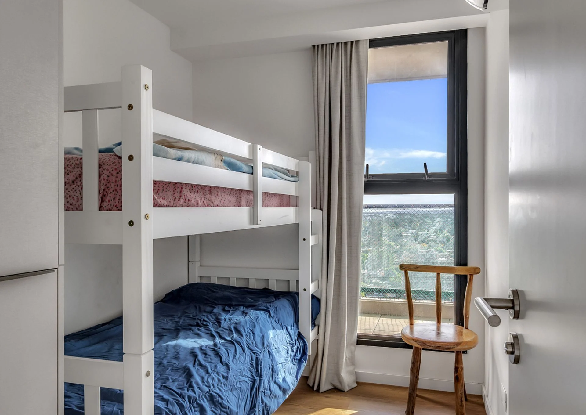 Unidad en piso alto con vista al mar, amplio living comedor, terraza, 3 dormitorios y 2 baños .