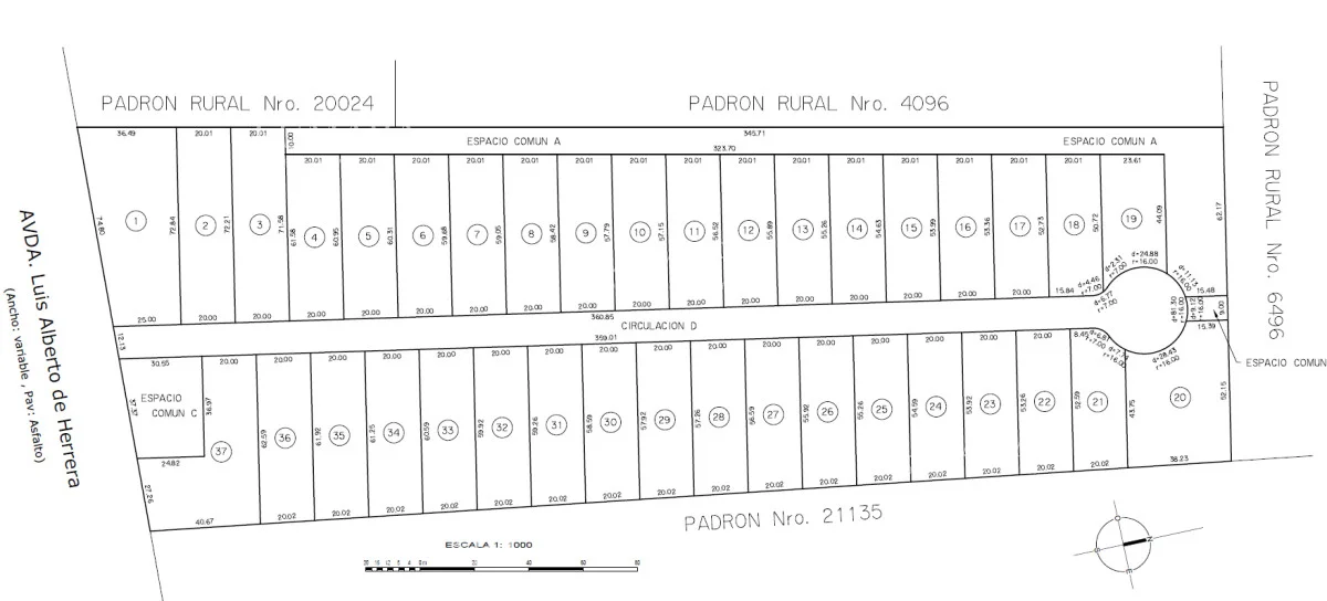 37 lotes desde 1.005 m2 a 2.253 m2