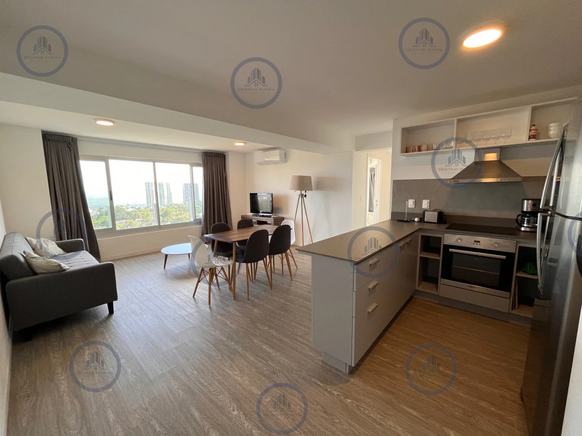Muy linda unidad en venta en piso alto. Excelente orientación solar para disfrutar de los mejores atardeceres. Cuenta con living comedor con cocina integrada , 2 dormitorios , baño completo y garaje en subsuelo.