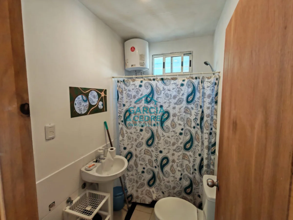 Departamento B: 1 dormitorio, 1 baño, cocina integrada y área de estar.