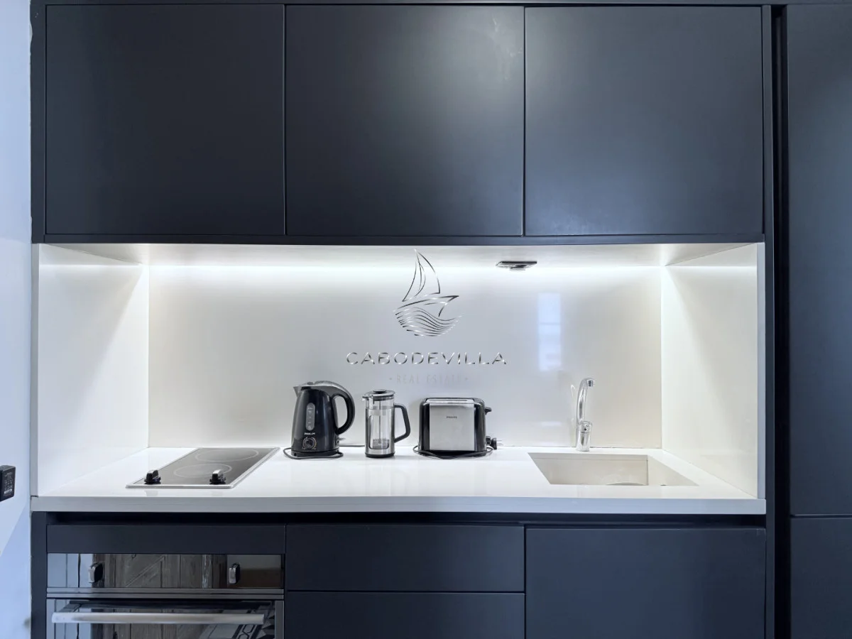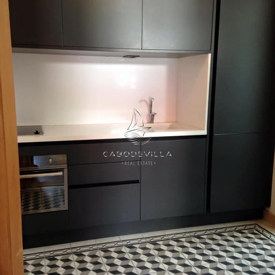 línea de los muebles de cocina. Gran lugar de guardado.