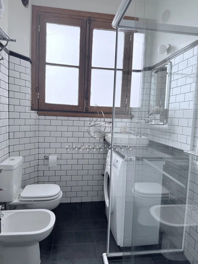 inodoro y bidet, una bacha de pie antigua y radiador toallero eléctrico. También dentro del baño se colocó un lavarropas con menos de un año de uso. La cocina se encuentra de inmediato al acceder al departamento, cómoda y moderna, mesada, bacha y alzada en