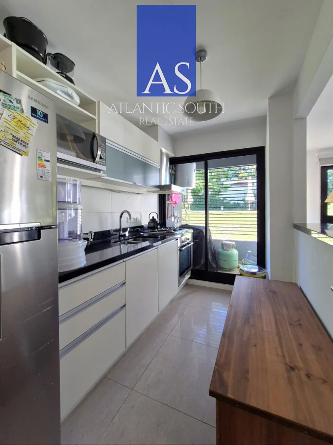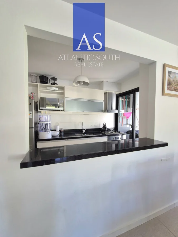 La cocina es semi-integrada, equipada y funcional, con barra desayunadora que aporta practicidad y modernidad al espacio. Dispone de dos dormitorios cómodos, uno de ellos en suite, logrando una distribución eficiente y confortable.