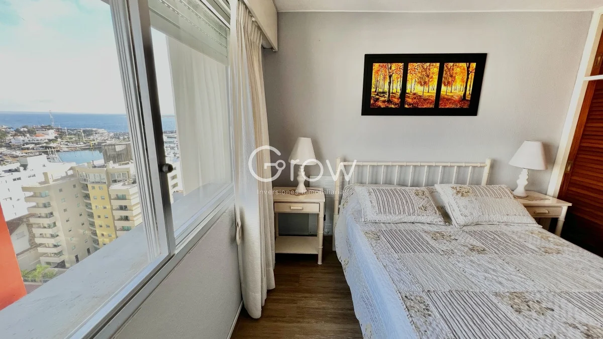 Excepcional apto con vistas al Puerto y Playa Brava !!! Completamente reciclado, cuenta con amplio living comedor con gran terraza esquinera al Puerto, 2 dormitorios muy soleados, 2 baños completos a nuevo, toilette, cocina súper equipada, terraza lavadero y garaje. El edificio cuenta con servicio de mucamas, Tv Cable, wi-fi, barbacoa , sala de tv, sala de lectura, lavandería, salón de juegos, serv de mantenimiento y recepción 24 hs.-