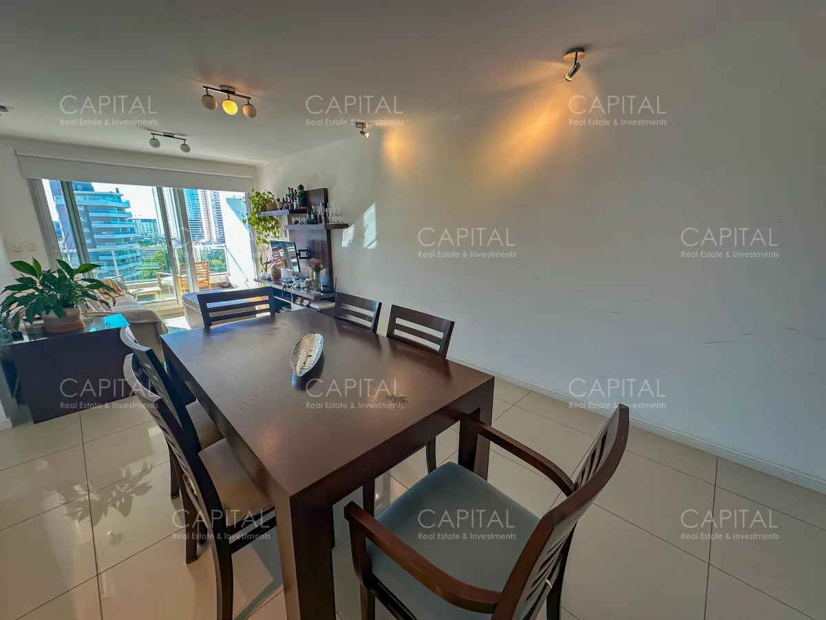 Con dos cómodos dormitorios, 2 baños (1 en suite) living comedor con acceso al balcon y cocina definida. La unidad cuenta con calefacción por losa radiante y aires acondicionados en cada ambiente y 1 garage ubicado en sub suelo del Edificio.