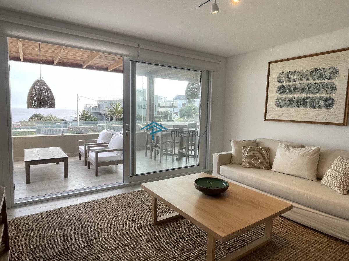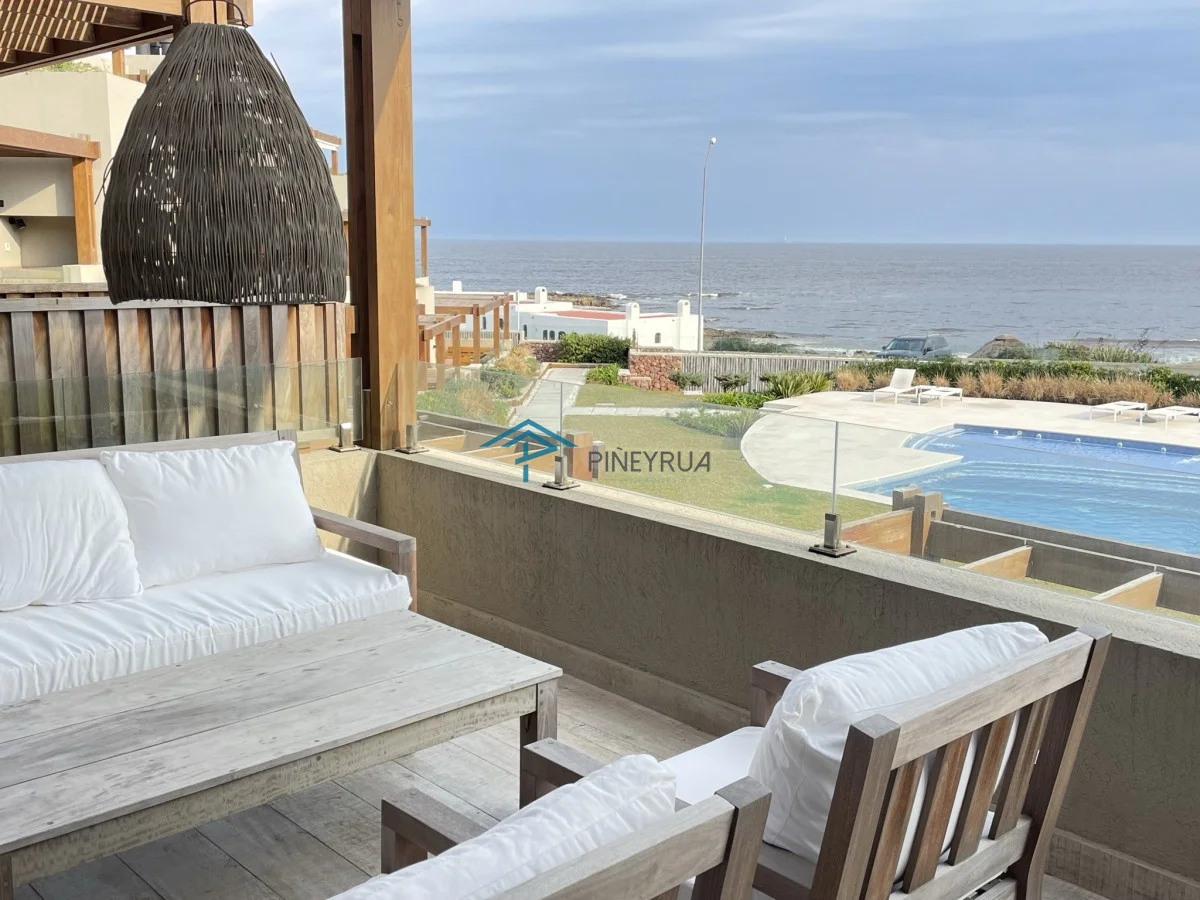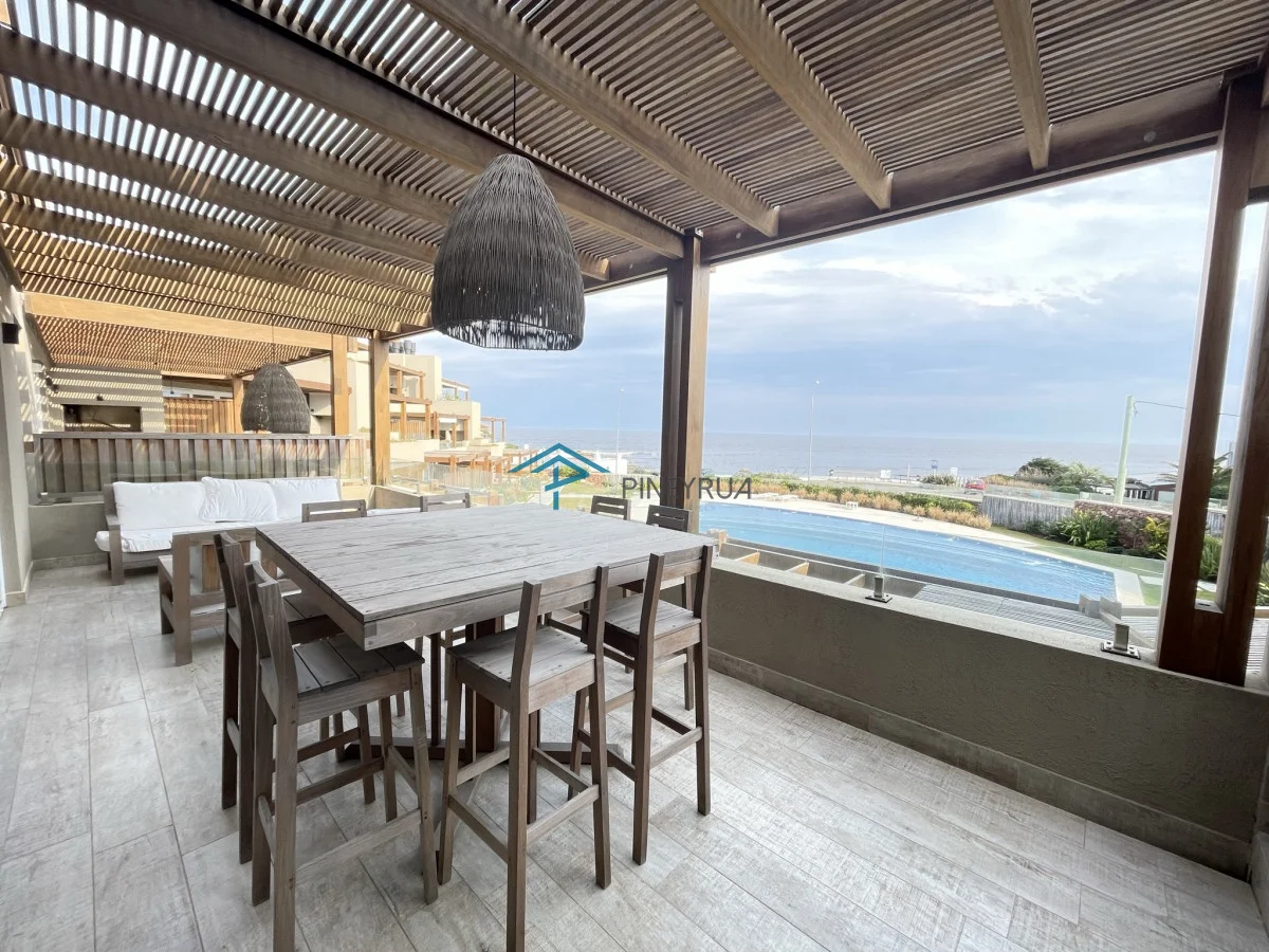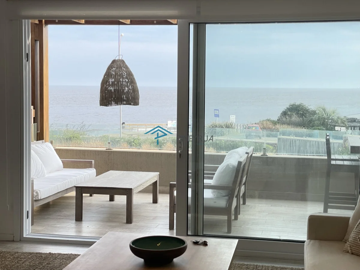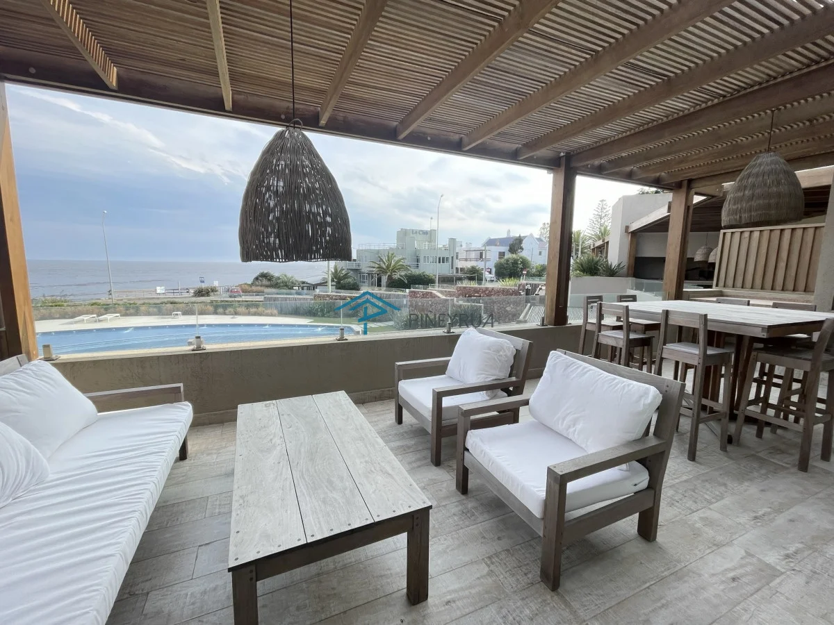 Espléndido apartamento con vistas al mar frente a playa La Posta del Cangrejo. Consta de tres suites (principal con vestidor), toilette de visitas, cocina bien equipada, integrada a un luminoso living-comedor con salida a balcón-terraza con living exterior y parrillero.