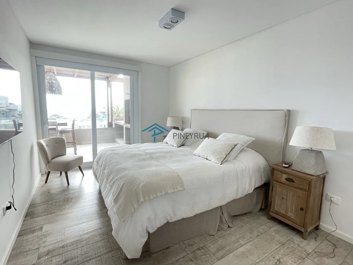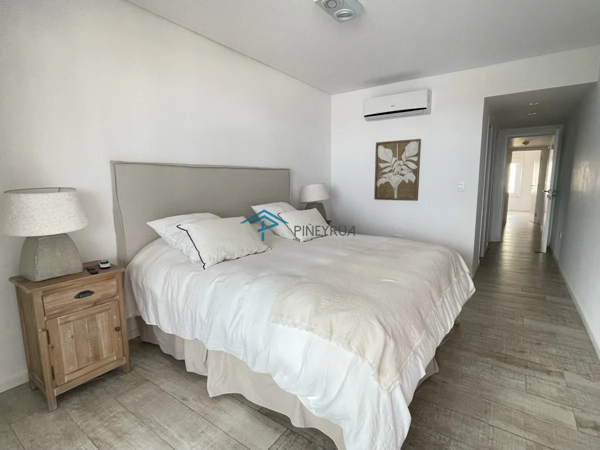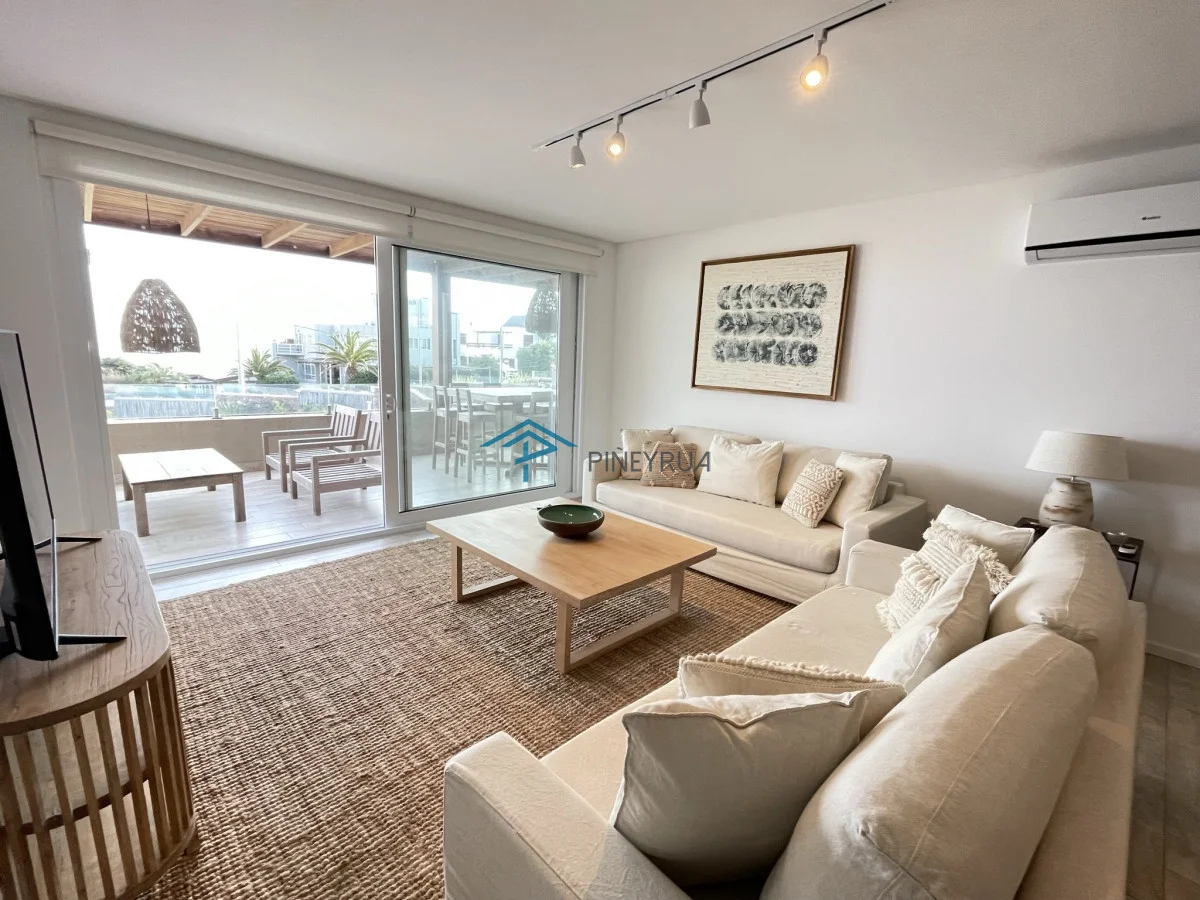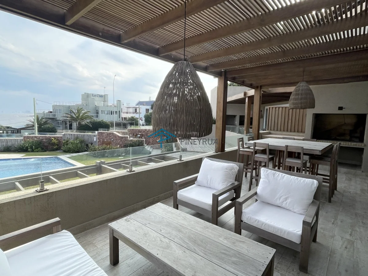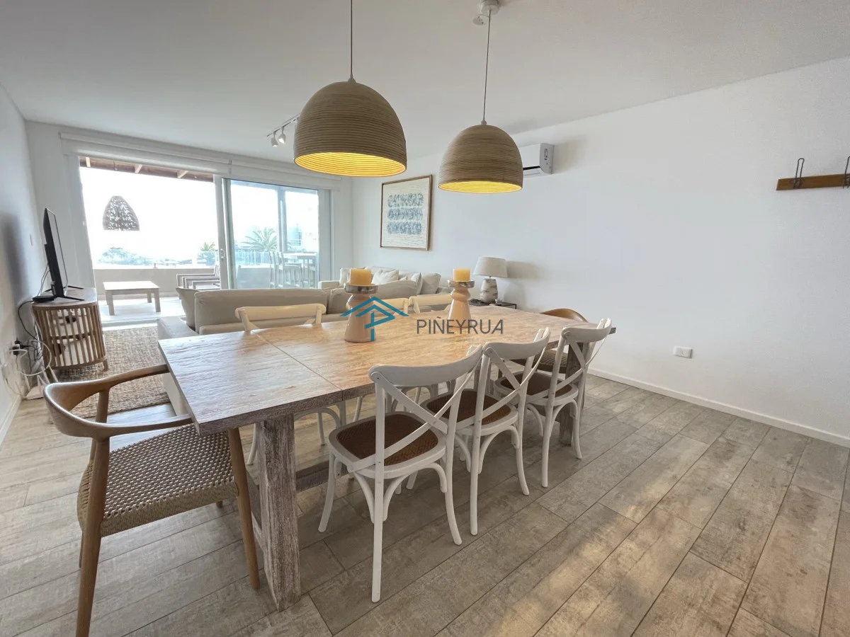 Espléndido apartamento con vistas al mar frente a playa La Posta del Cangrejo. Consta de tres suites (principal con vestidor), toilette de visitas, cocina bien equipada, integrada a un luminoso living-comedor con salida a balcón-terraza con living exterior y parrillero.