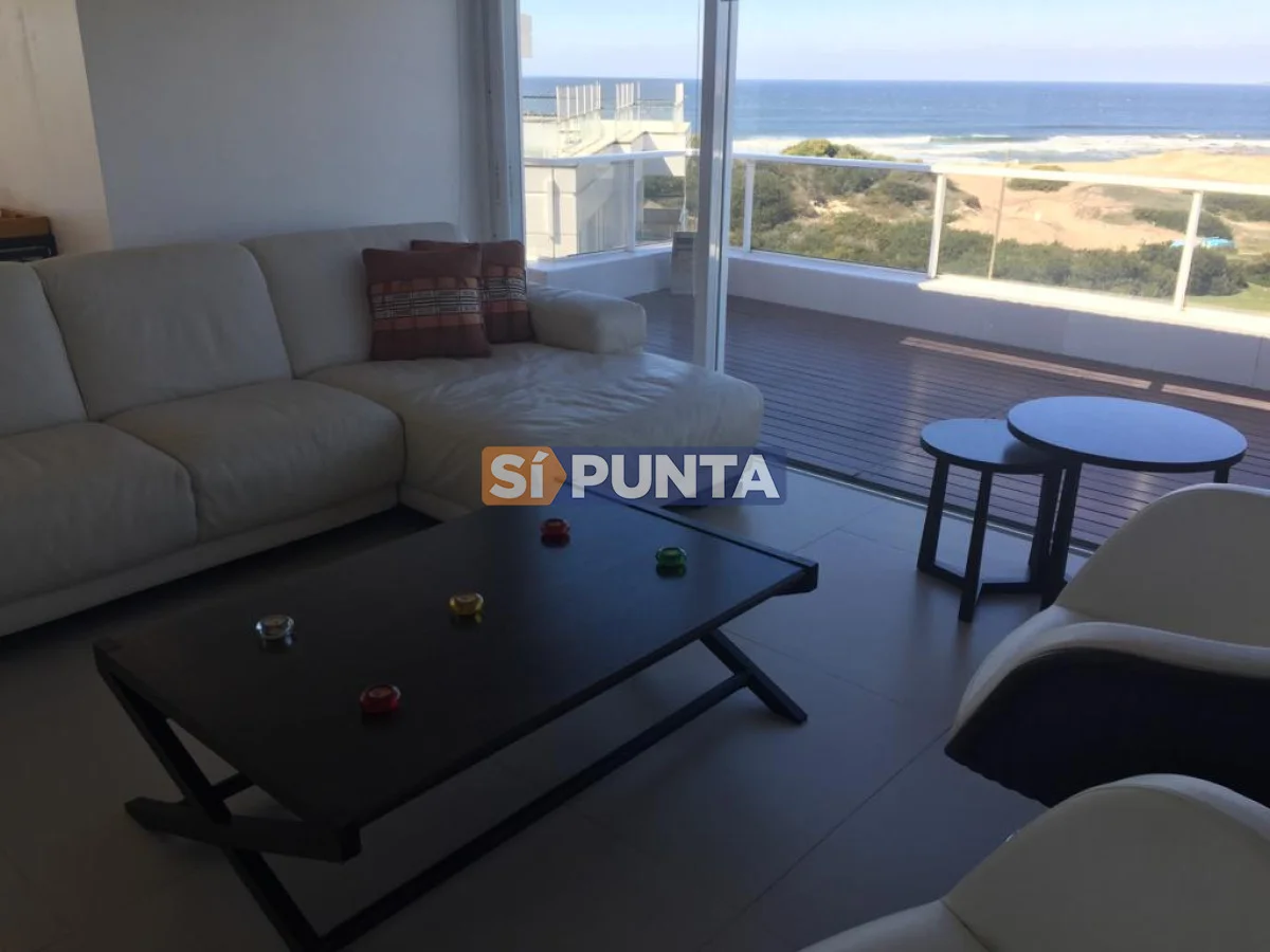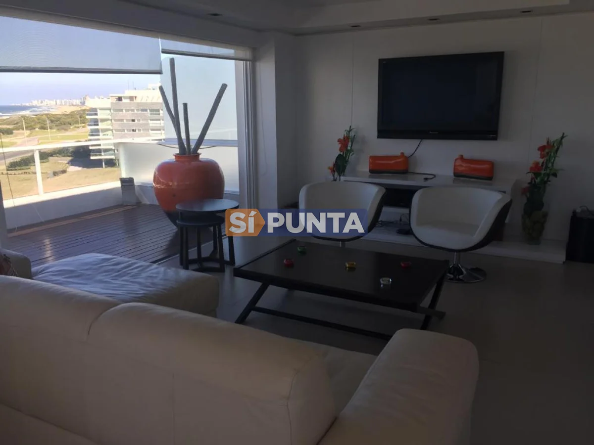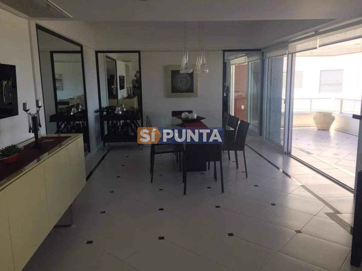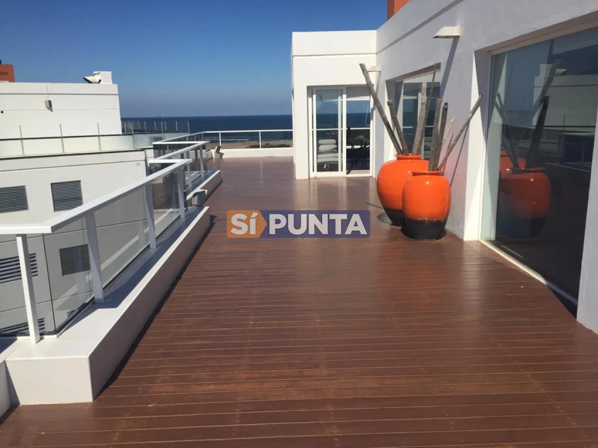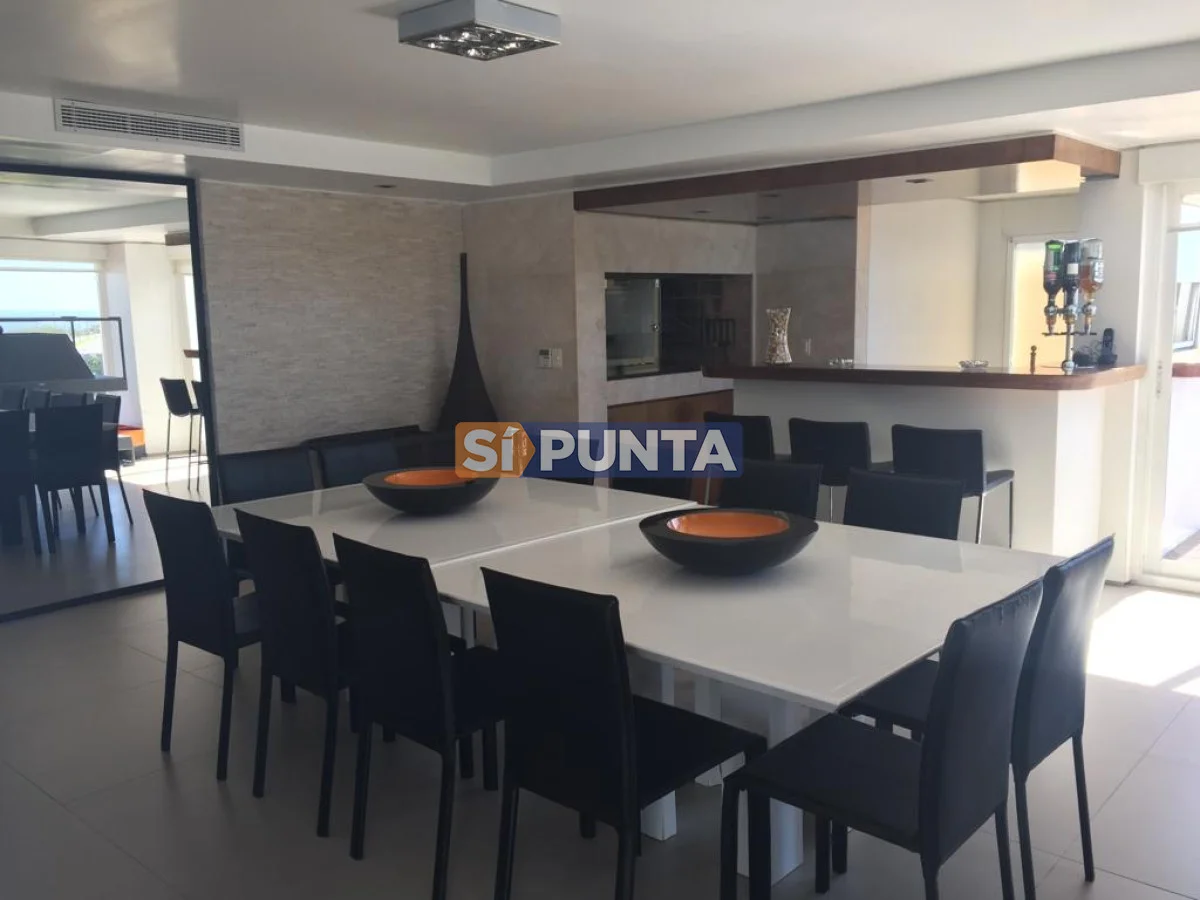 Amplio penthouse ubicado en Playa Brava. Gran barbacoa cerrada con parrillero, sala de estar, bar y terraza abierta. Aparte del apto cuenta con 1 dormitorio para el servicio. Alquiler anual: 2 pago semestrales. Comodidades: - Living comedor - Cocina definida - Toilette - 4 dormitorios - 4 baños en suite Referencia Interna : Tera-3262