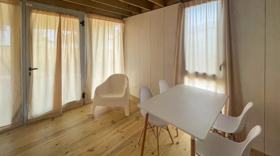 Planta alta: 2 dormitorios y baño completo, con acceso por escalera exterior desde patio interno.