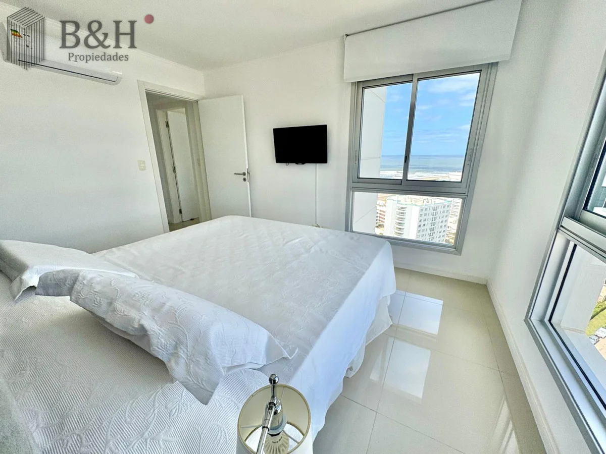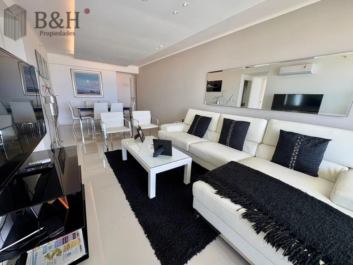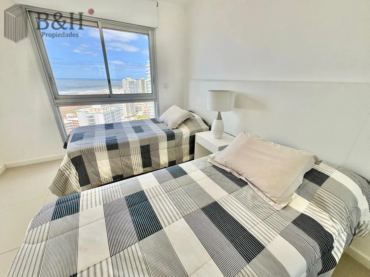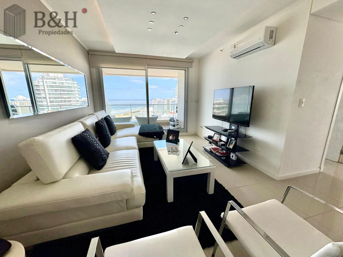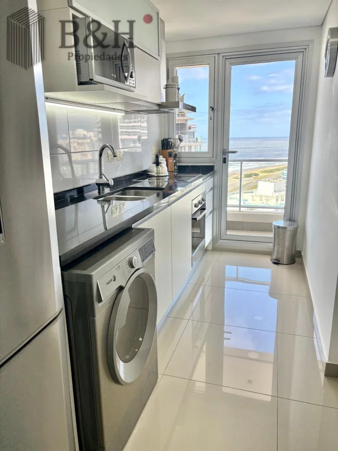 Unidad — en estado impecable — de 2 dormitorios, 2 baños (principal en suite), cocina definida con lavadero y un living-comedor amplio y luminoso con orientación suroeste y salida a balcón. Increíble vista al mar desde todos los ambientes.