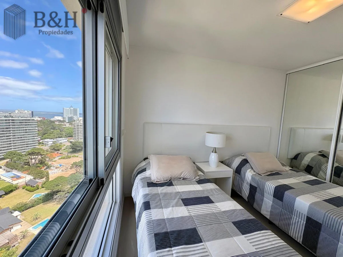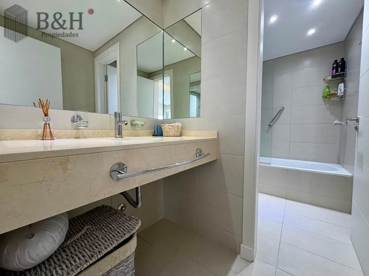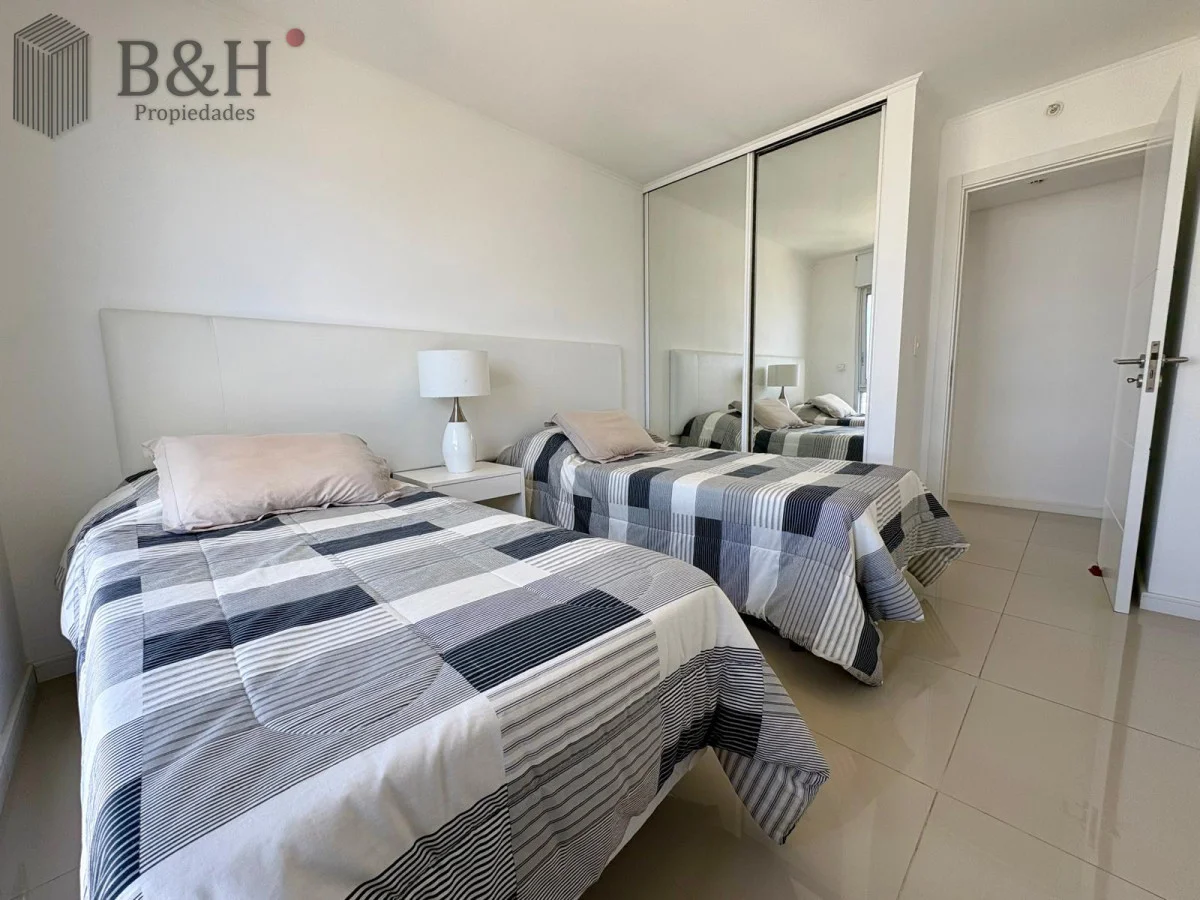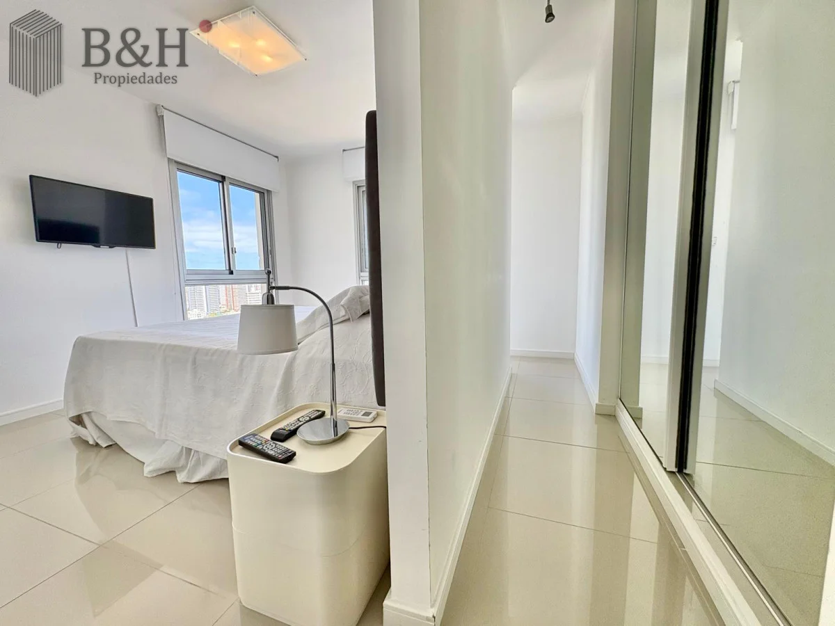 Unidad — en estado impecable — de 2 dormitorios, 2 baños (principal en suite), cocina definida con lavadero y un living-comedor amplio y luminoso con orientación suroeste y salida a balcón. Increíble vista al mar desde todos los ambientes.