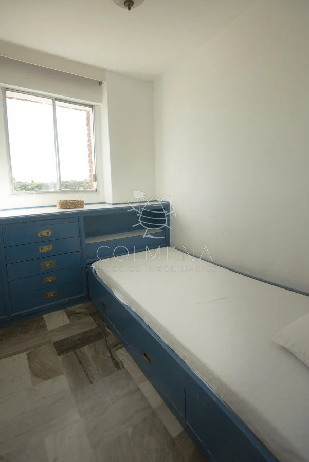 El living-comedor se integra a una terraza con vista panorámica al mar y al bosque, sin torres de por medio, lo que asegura amplitud visual y privacidad. Es una unidad esquinera, con 3 balcones que aportan muchísima luz natural, ventilación cruzada y una sensación de apertura única.
