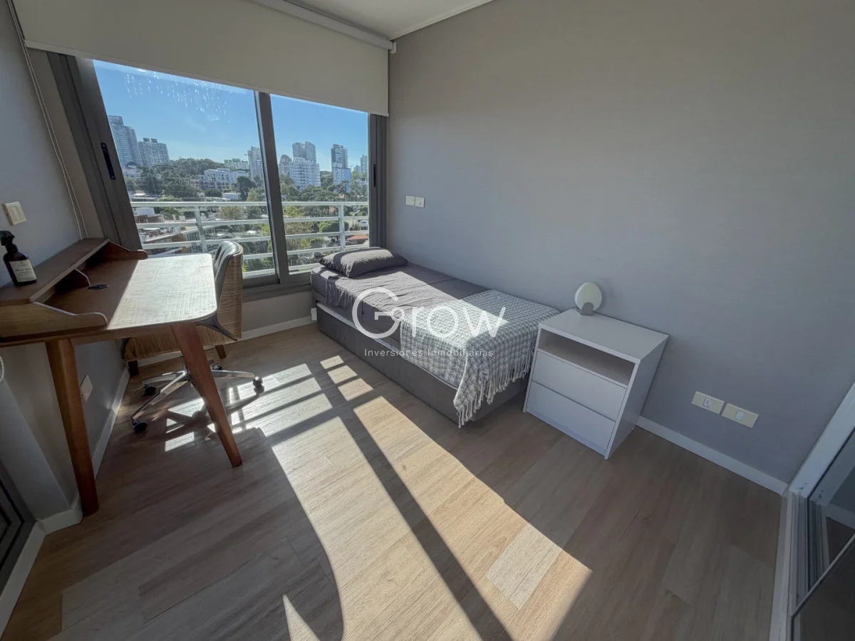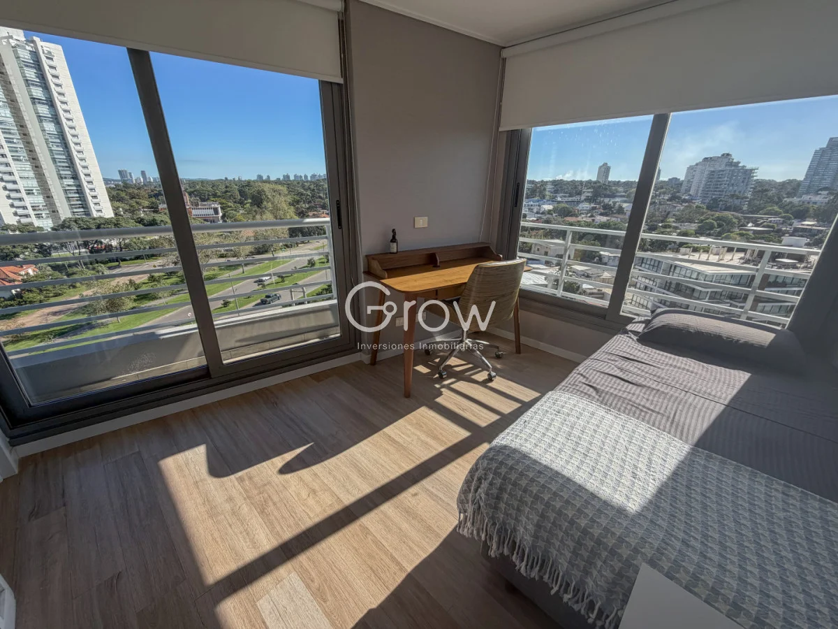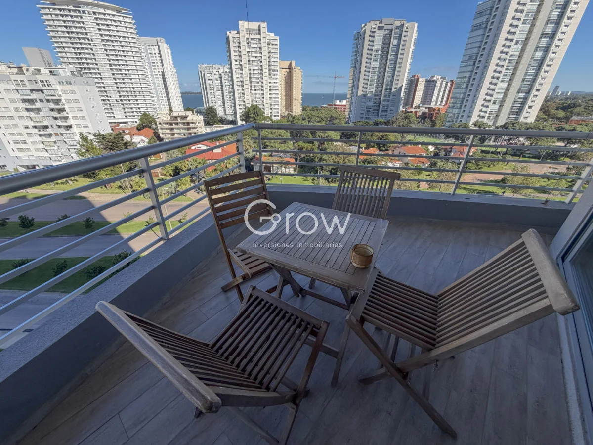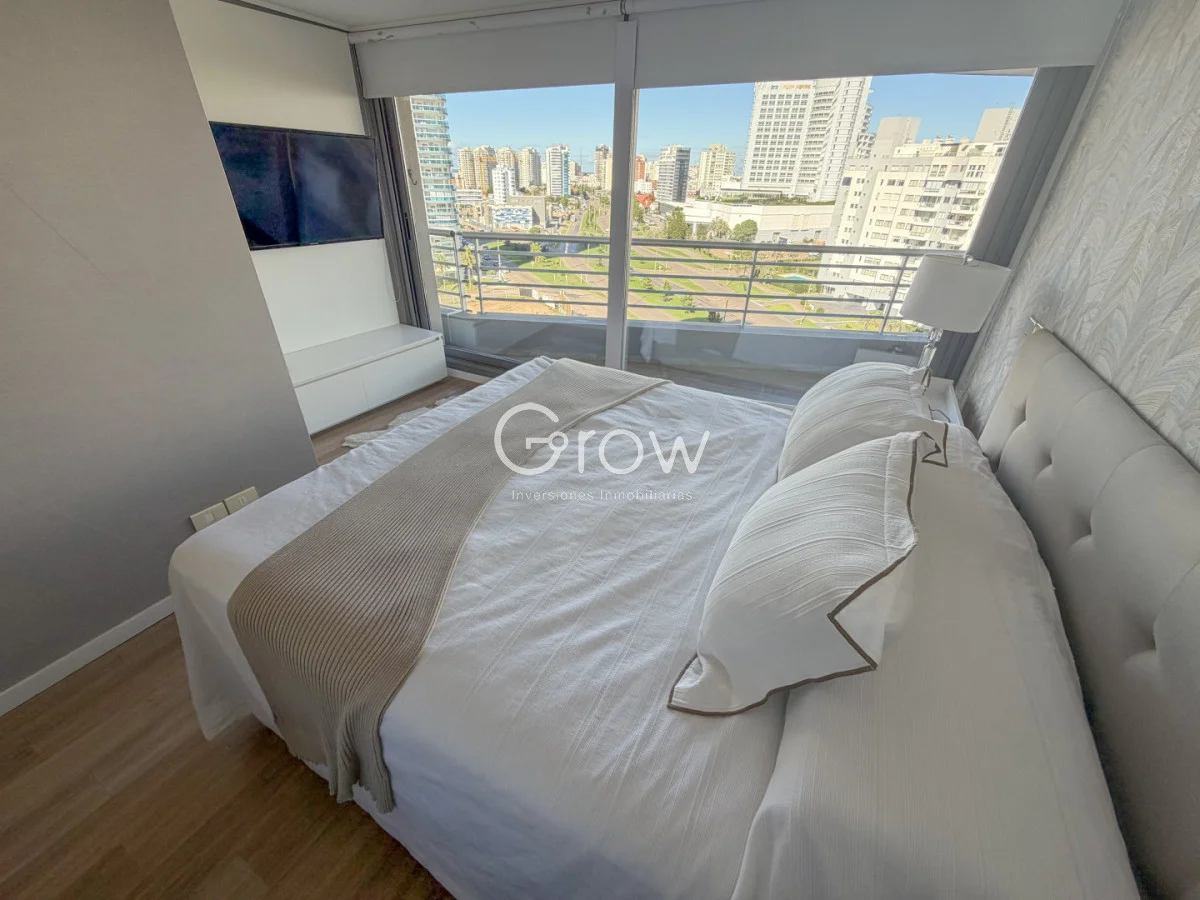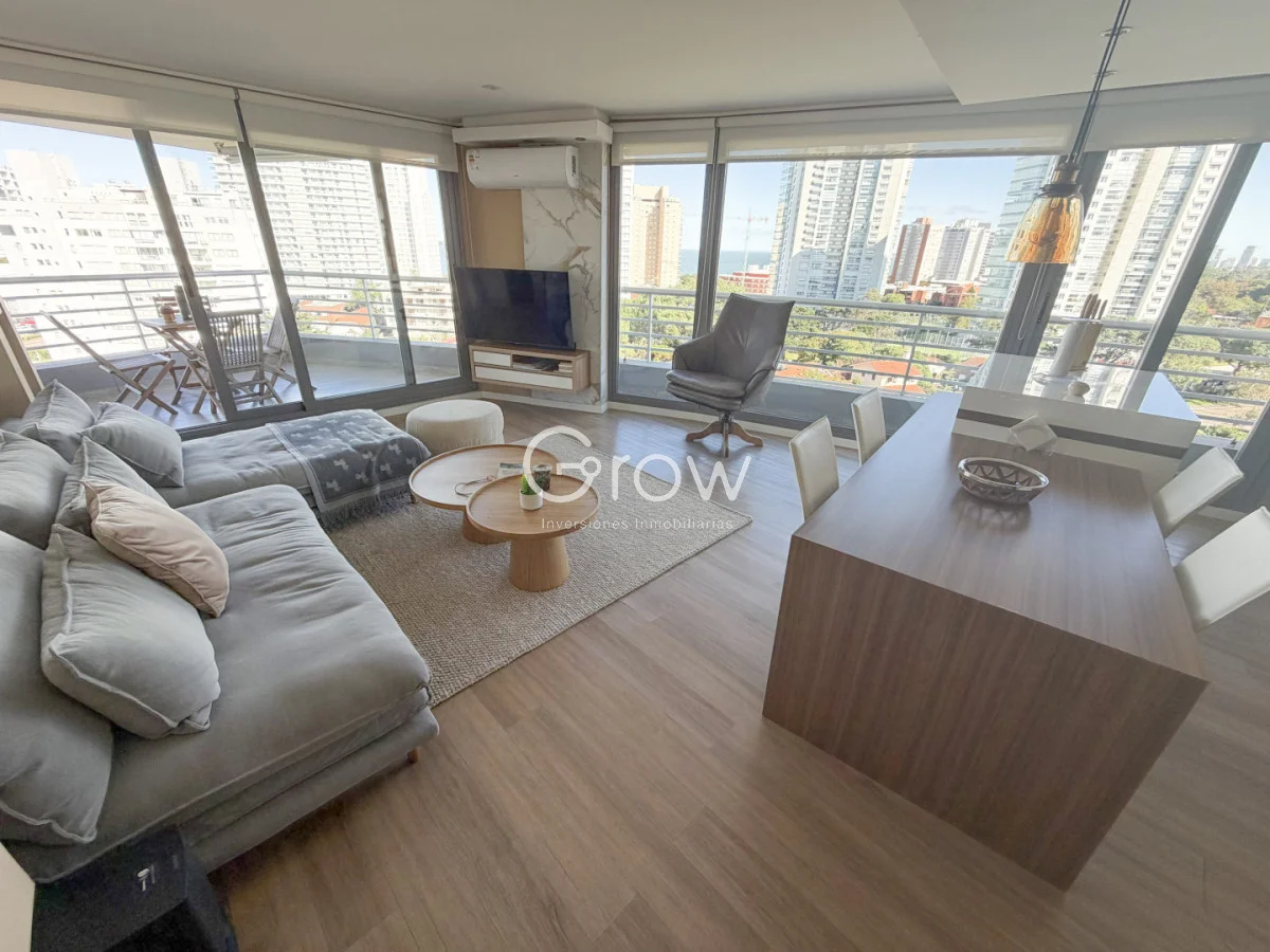 Apartamento esquinero piso alto de 2 dormitorios, con excelente distribución y espacios pensados para disfrutar todo el año. Living comedor con cocina integrada, balcón con vistas al mar, 2 cómodos dormitorios, 2 baños completos, el principal en suite. La unidad cuenta con losa radiante sectorizada y aire acondicionado en todos los ambientes, además de toldos Ponti en el balcón. Con excelente calidad constructiva y terminaciones. Amenities completos para disfrutar todo el año para toda la familia. Cochera doble en subsuelo. ¡Consulte con nuestros asesores! Referencia Interna : Tera-2762