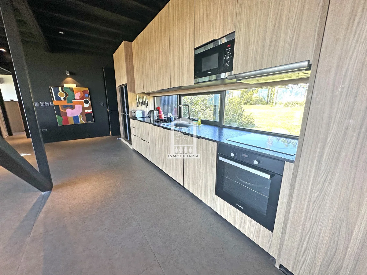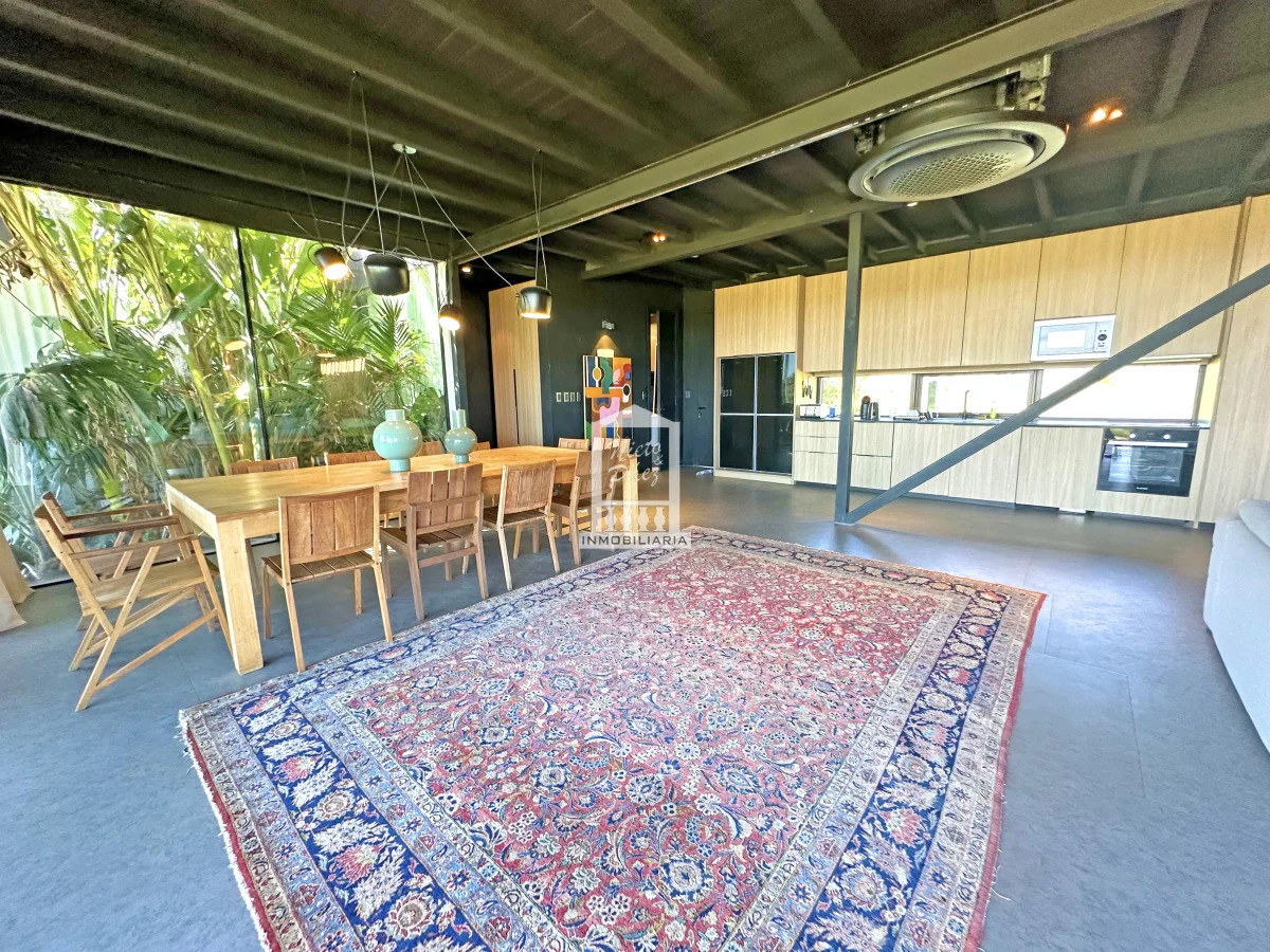 El interior propone una planta funcional y luminosa, con un amplio living comedor rodeado de grandes ventanales que invitan a la naturaleza a formar parte del hogar. La cocina integrada refuerza este concepto de vida contemporánea, fluida y social. Cuenta con tres dormitorios, dependencia de servicio, área de lavadero y cochera para dos vehículos.