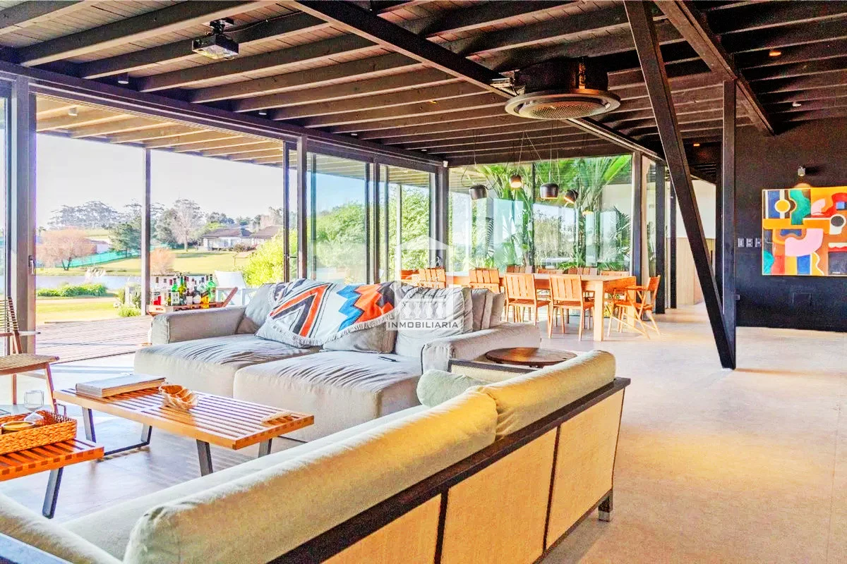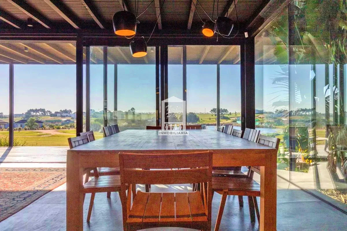 Implantada sobre un generoso lote de más de 4.000 m², la propiedad se integra con elegancia al paisaje, acompañando las ondulaciones naturales del terreno y enmarcando vistas abiertas que transmiten serenidad en cada rincón.