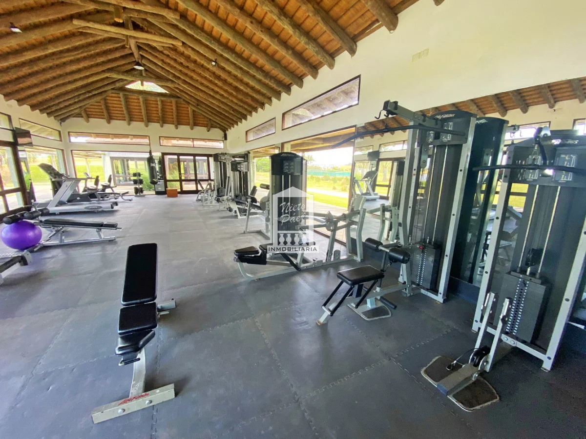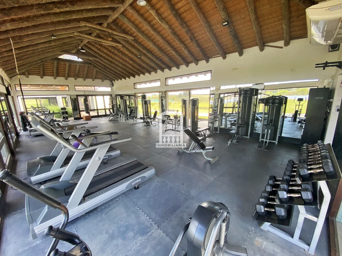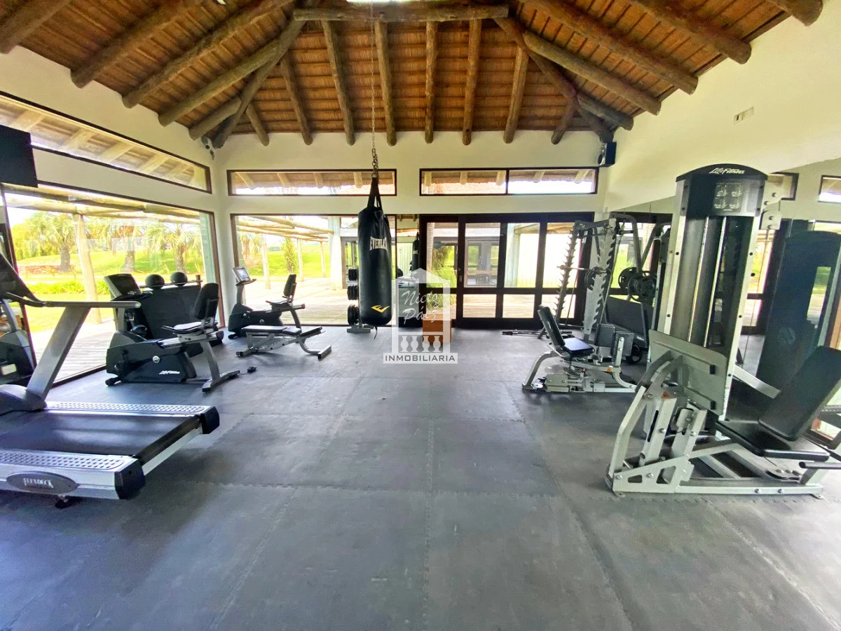 Pegado al club house, con dos sectores bien diferenciados; Musculación con maquinas aeróbicas y salón para clases grupales.