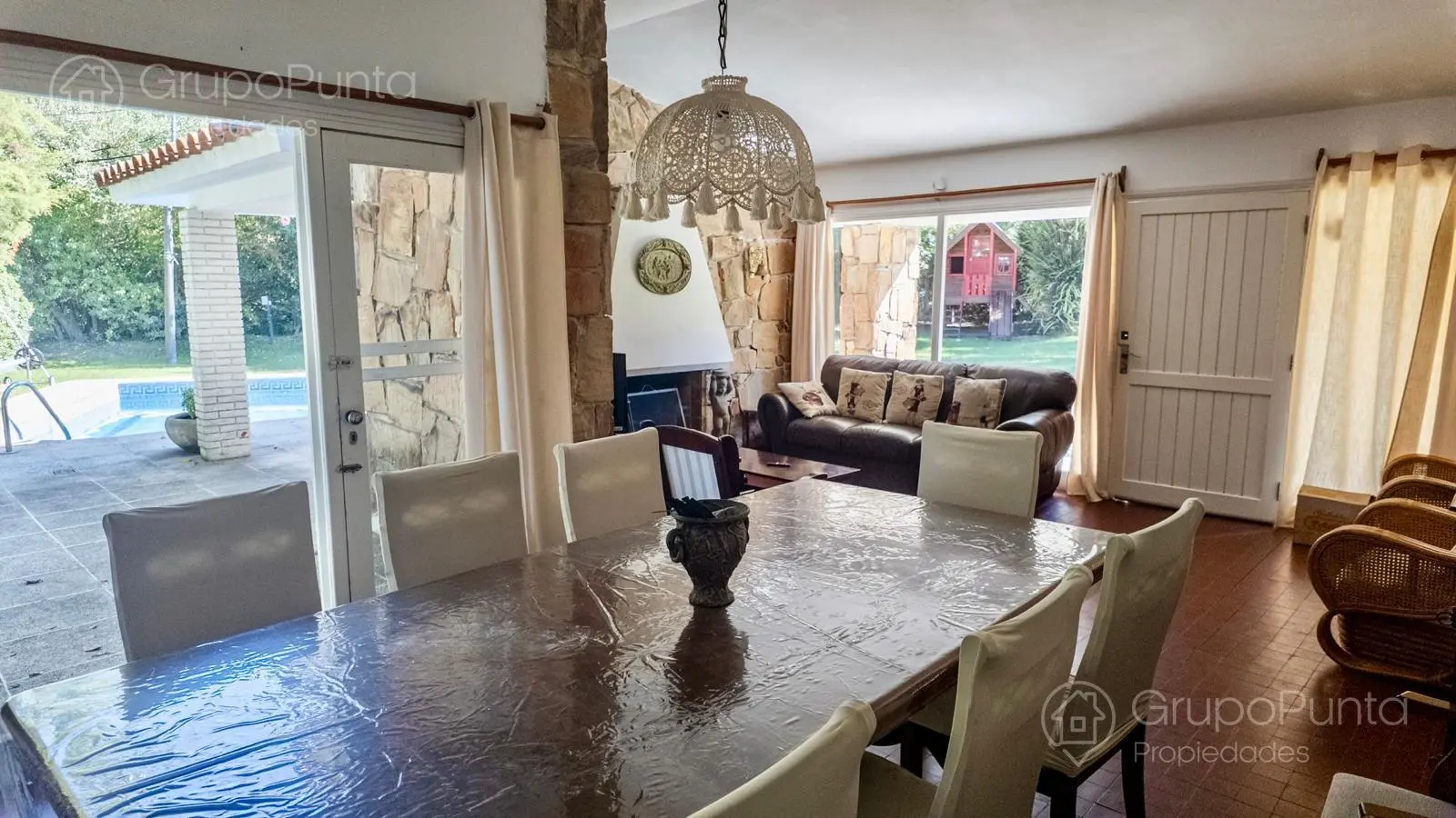 En el exterior, el verdadero protagonista es su espacio pensado para vivir al aire libre: un jardín parquizado rodea la piscina, mientras que el parrillero techado invita a disfrutar de largas tardes de verano y reuniones con familia y amigos. Una encantadora casita de juegos suma un toque ideal para la vida familiar.