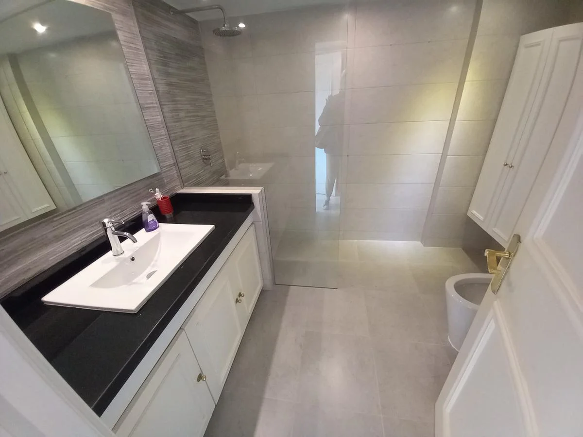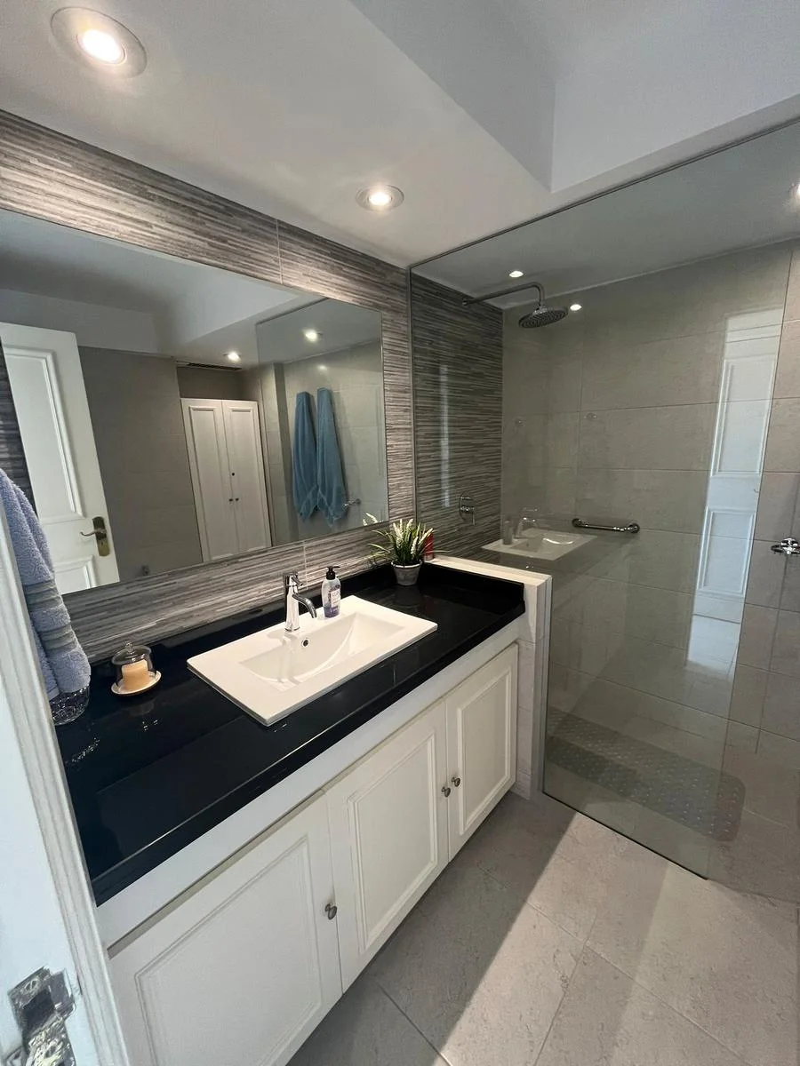 \"Impeccable apartment facing the sea. It consists of four en-suite bedrooms, a spacious living-dining room with ocean views, a private terrace, a large and well-equipped kitchen, laundry room, and an external service unit. The building offers 2 heated pools, a gym, 24-hour security, maid service, and beach service. Spectacular views.\"