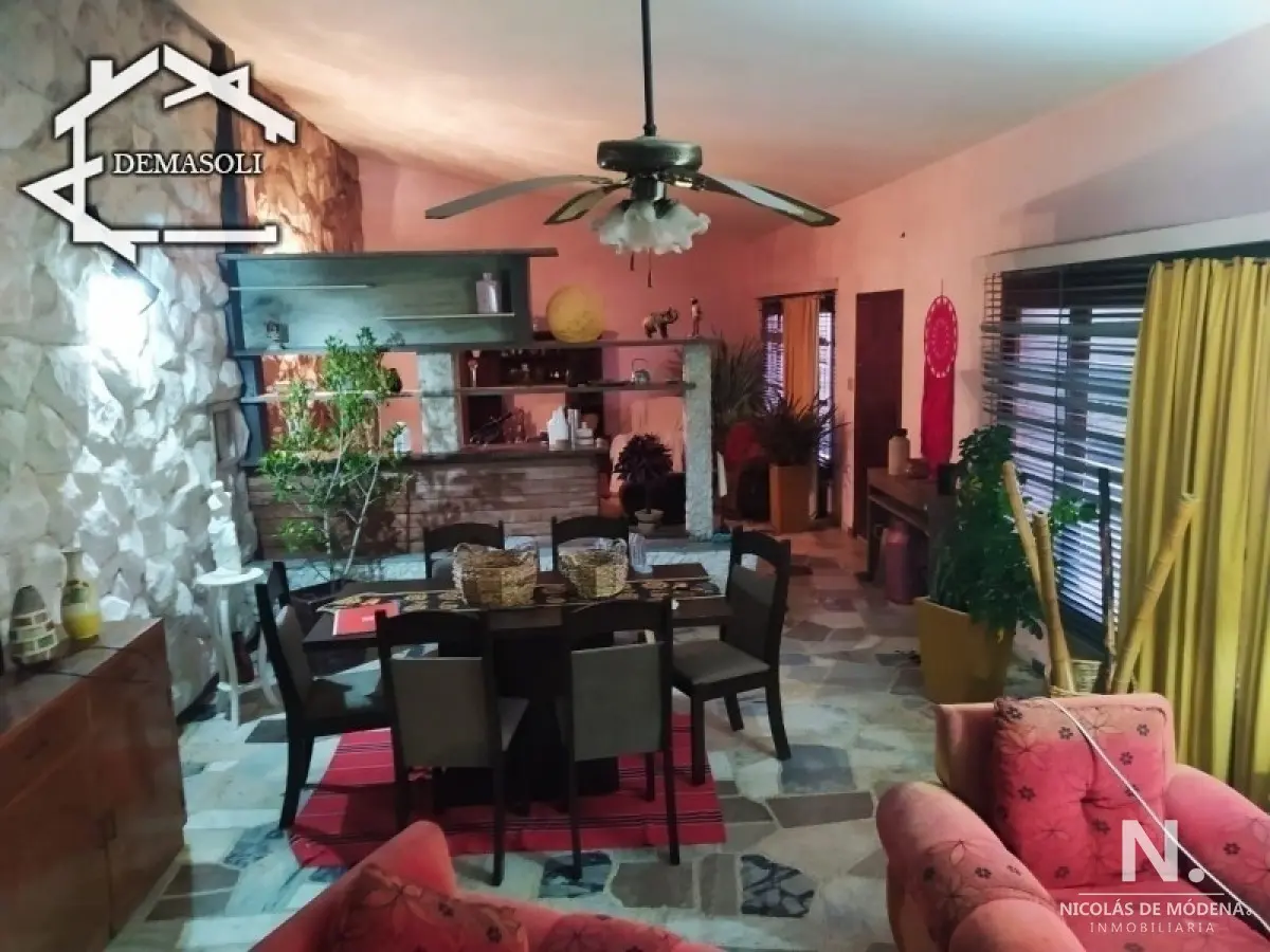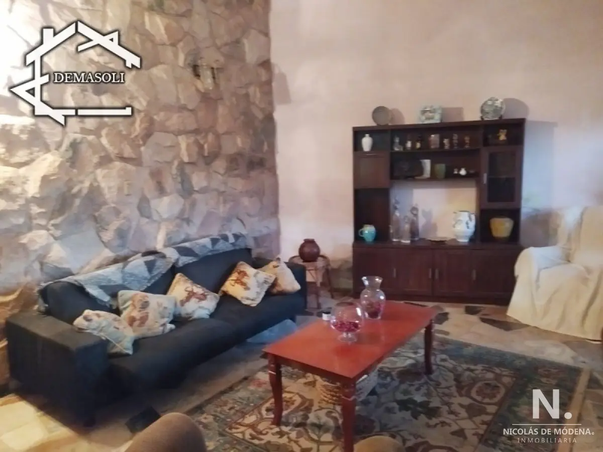 Se vende casa de gran porte, ubicada en la entrada de la ciudad de Pan de Azúcar, Departamento de Maldonado. Construcción sólida, con revestimientos en piedra y mármol. Se distribuye: en planta baja: living - comedor amplio, estufa a leña, cocina y baño completo con bañera y 2 dormitorios. En planta alta: apartamento con baño, cocina, con dormitorio o sala con estufa a leña, puede accederse con total independencia de la casa en su planta baja. Cuenta con jardín cercado con muro, parrillero techado Precio: U$S 250.000