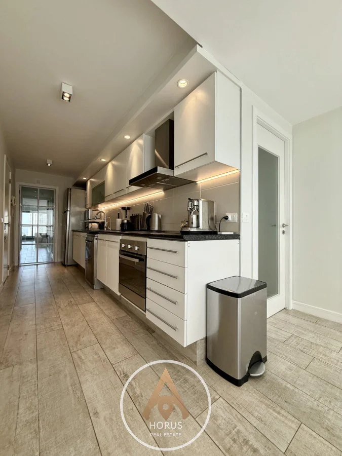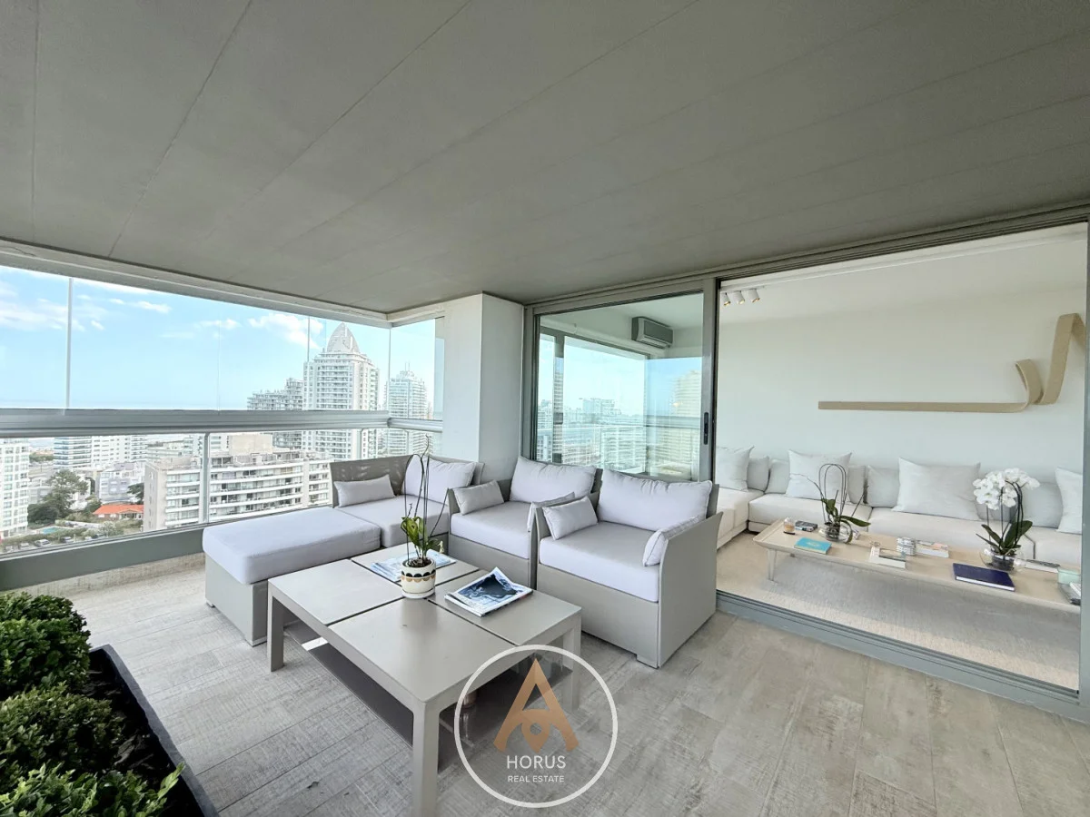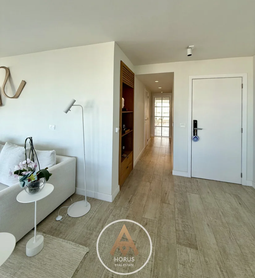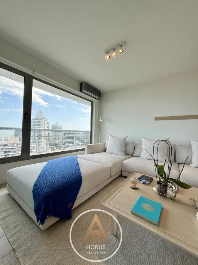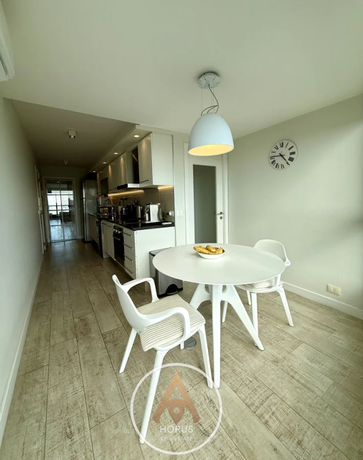 Área Social: Un espacioso living-comedor se abre hacia una terraza equipada con cerramiento plegable de alta tecnología, permitiendo integrar el exterior durante todo el año. La cocina, de diseño definido, cuenta con un elegante desayunador y área de servicio completa.