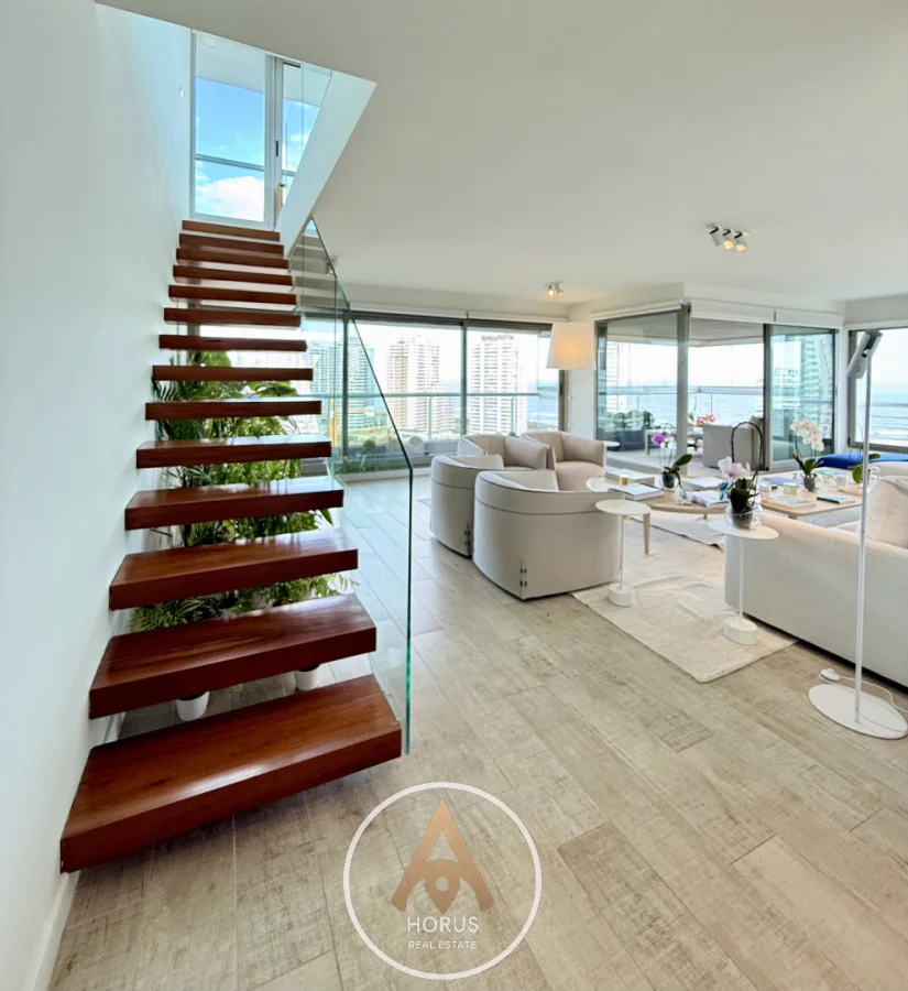 Ubicado a escasos 200 metros de la orilla atlántica, este excepcional Penthouse dúplex se erige como una joya arquitectónica para los conocedores del diseño y el confort. Situado en una moderna torre de 15 niveles, la propiedad ha sido concebida bajo un concepto de House in the Sky, ofreciendo la seguridad y los servicios de un edificio de alta gama con la independencia de una casa privada.