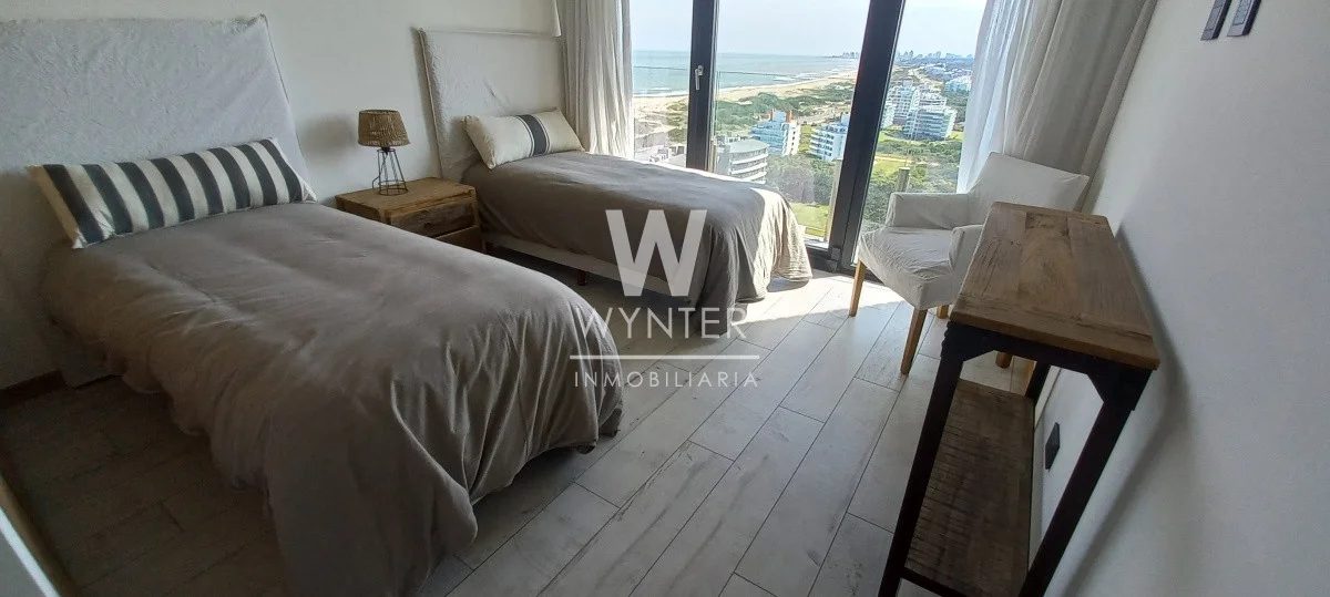 Excelente apartamento de 2 dormitorios con 3 baños (2 en suite) + den, amplio living-comedor con espectaculares vistas al mar, cocina integrada, lavadero integrado y garaje. La suite principal cuenta con baño compartimentado y vestidor.