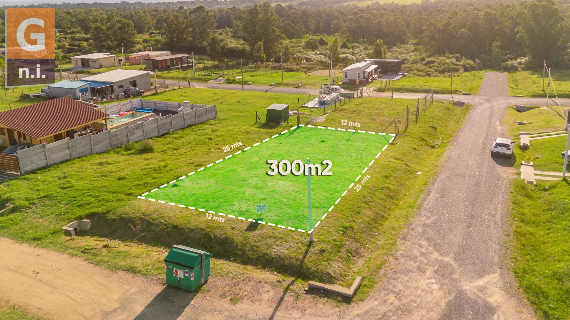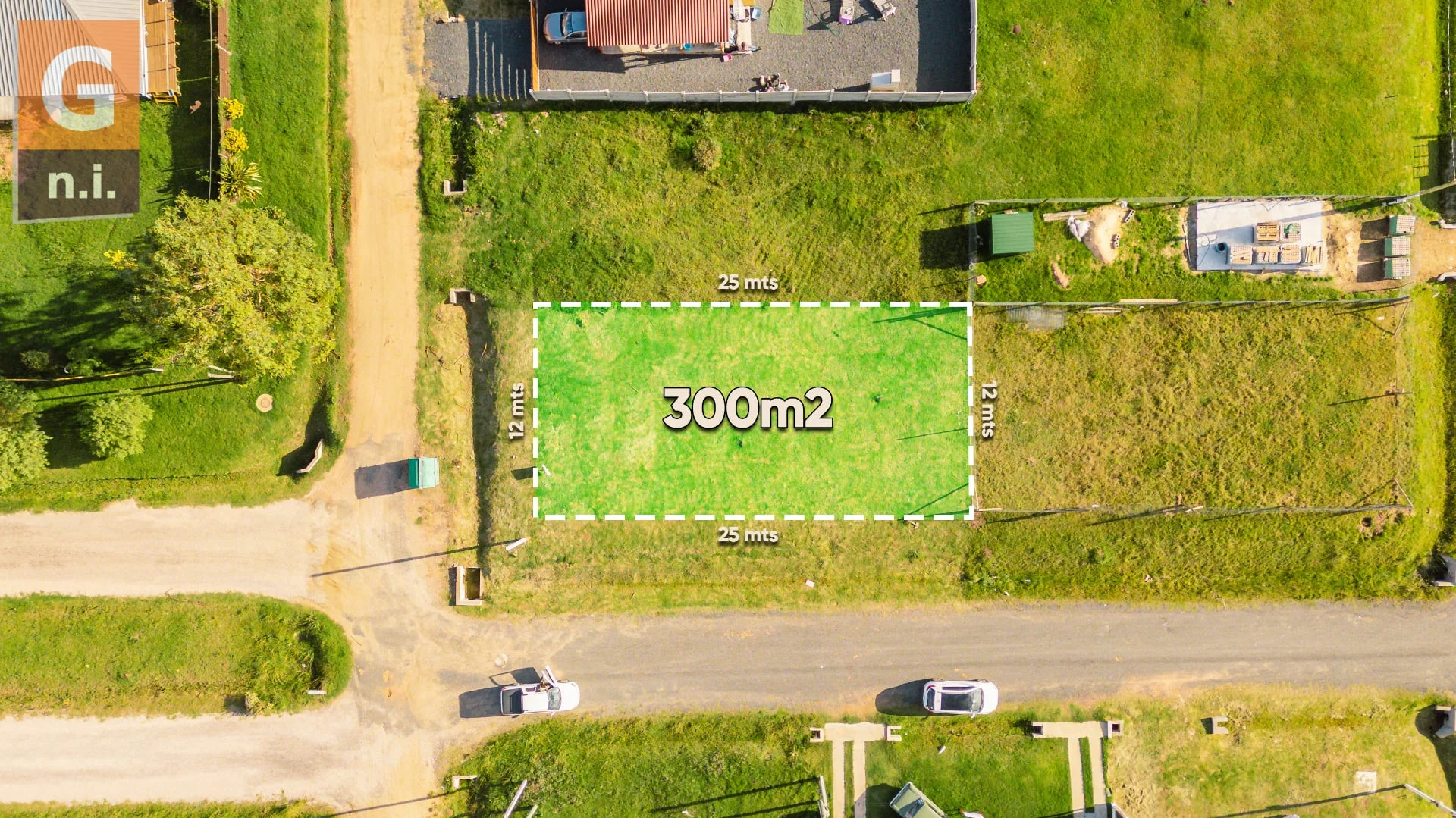 El terreno cuenta con 300 metros cuadrados, 12 metros de frente y 25 de fondo.