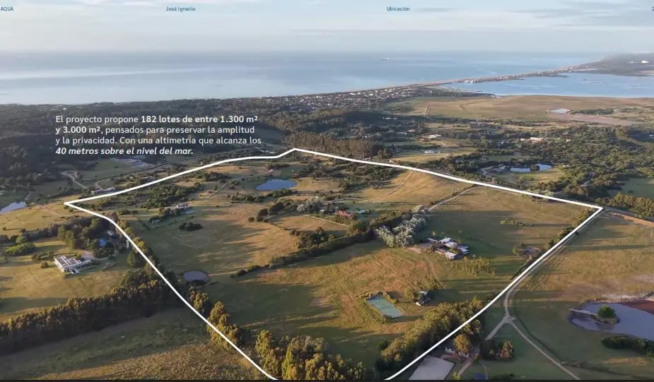 El proyecto propone 182 lotes de entre 1.300 m² y 3.000 m², pensados para preservar la amplitud y la privacidad. Con una altimetría que alcanza los 40 metros sobre el nivel del mar.