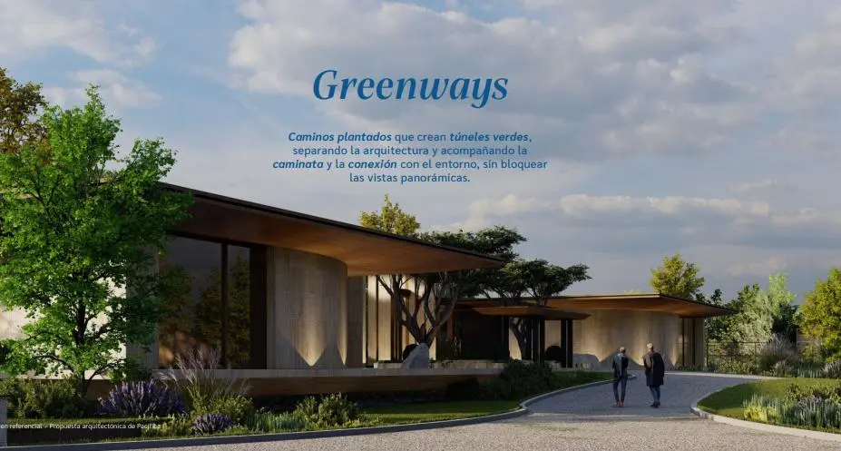 Desarrollado a partir de una visión integral y atemporal. El urbanismo y paisajismo, desarrollados por DIEGO GONZÁLEZ PONDAL, estructuran el barrio respetando la topografía, el verde y las visuales, entendiendo el espacio exterior como parte central de la experiencia.